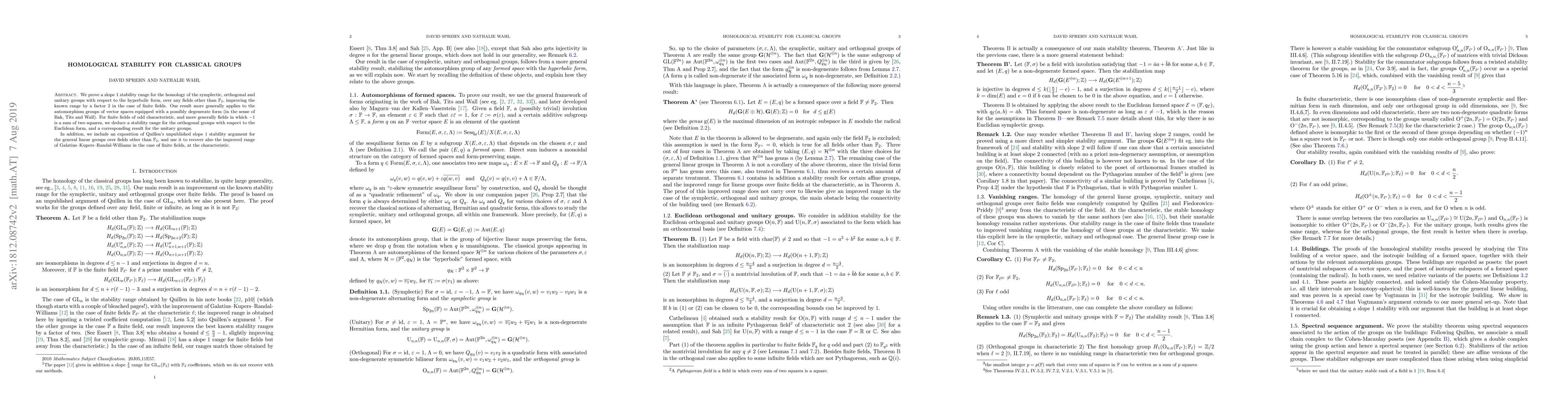 This paper proves a slope 1 stability range for the homology of symplectic, orthogonal, and unitary groups over fields other than $F_2$, doubling the known range for finite fields. It also extends these results to automorphism groups of vector spaces with degenerate forms and includes Quillen's unpublished stability argument for general linear groups.