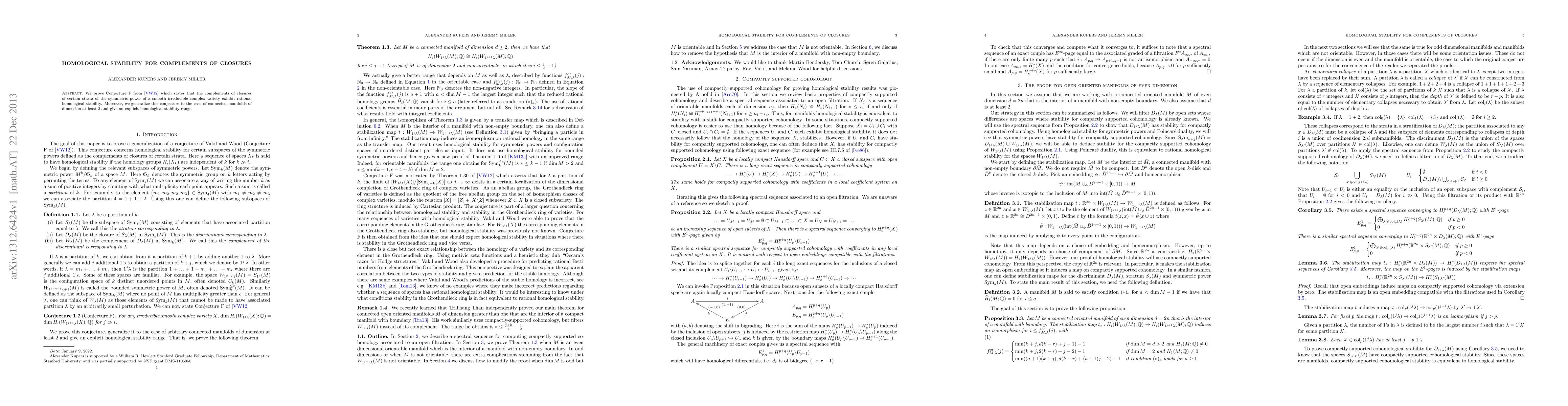 This paper proves Conjecture F, demonstrating rational homological stability for complements of closures of specific strata in the symmetric power of a smooth irreducible complex variety. The authors extend the result to connected manifolds of dimension at least 2 and provide a clear stability range.