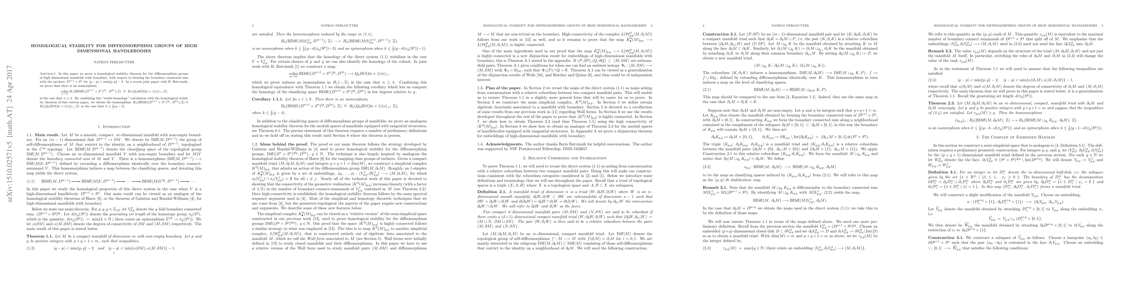 This paper proves a homological stability theorem for diffeomorphism groups of high dimensional manifolds with boundary, specifically when forming boundary connected sums with certain products. It also determines the (co)homology groups and characteristic classes for smooth fibre-bundles with specific fibre structures.