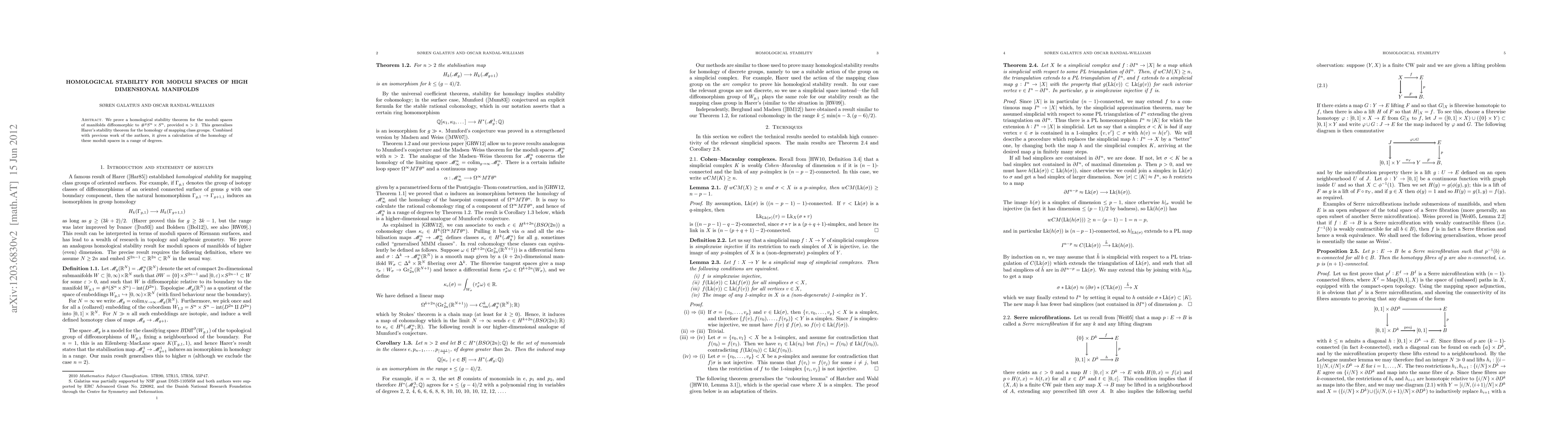 The paper proves a homological stability theorem for moduli spaces of high-dimensional manifolds diffeomorphic to g(S^n x S^n) when n > 2, generalizing Harer's stability theorem for mapping class groups, and calculates the homology of these moduli spaces in various degrees.