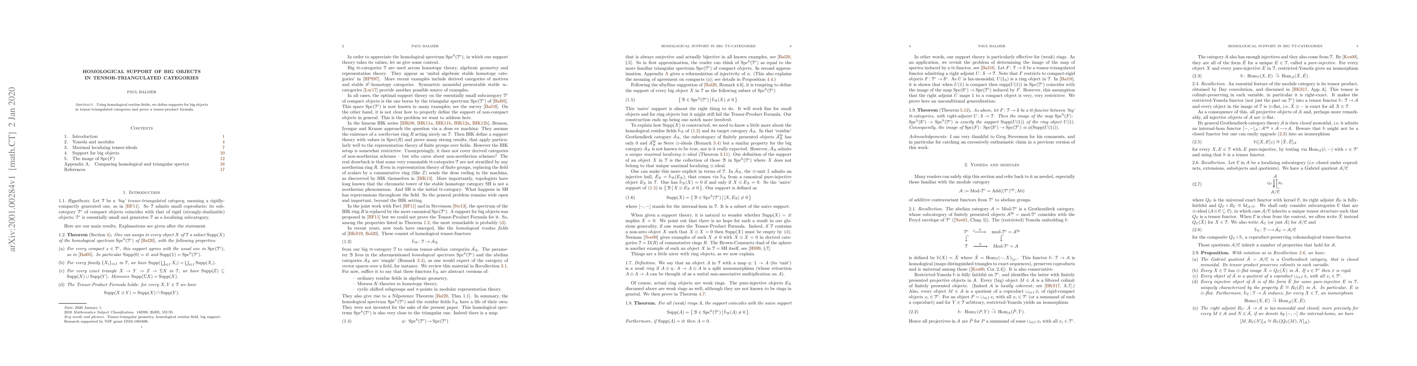 Summary: The paper defines homological supports for large objects in tensor-triangulated categories using residue fields, and establishes a tensor-product formula for these supports.