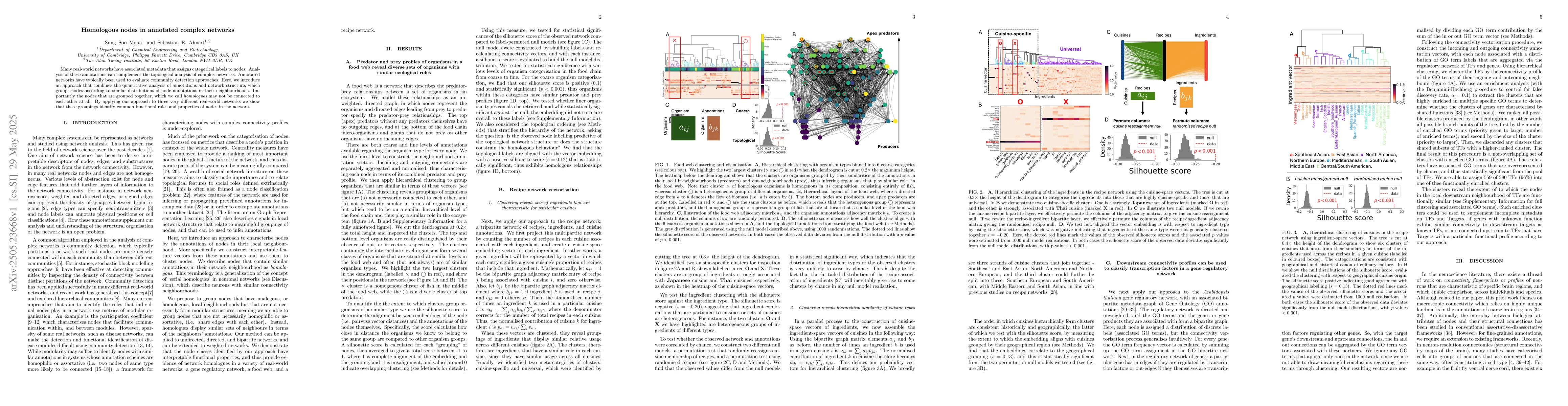 The paper presents a novel method for clustering nodes in annotated networks based on the similarity of annotation distributions in their neighborhoods, introducing the concept of 'homologous' nodes that may not be directly connected.