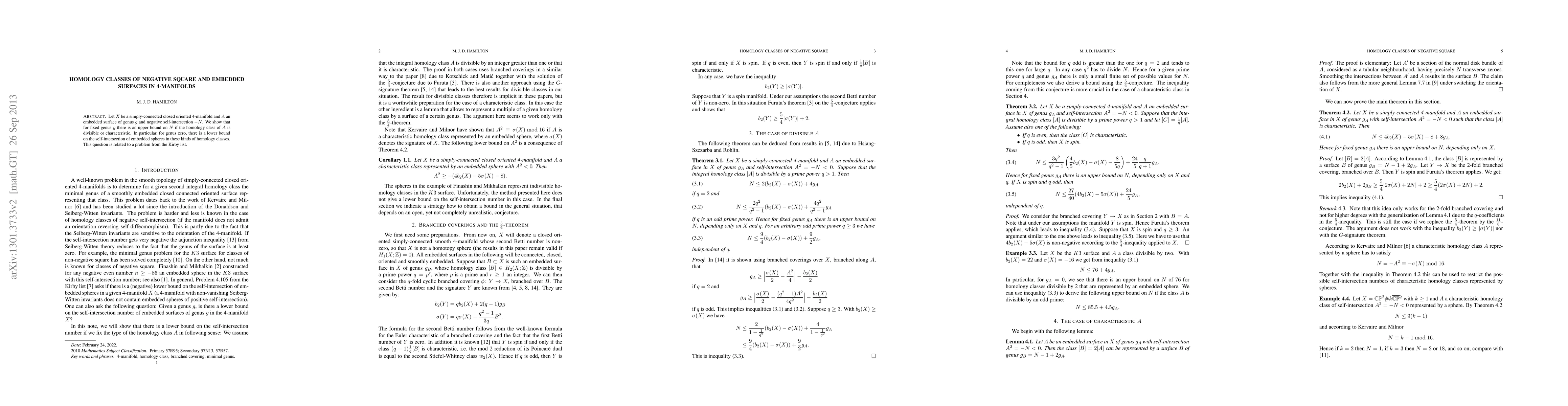 Let X be a simply-connected closed oriented 4-manifold and A an embedded surface of genus g and negative self-intersection -N. We show that for fixed genus g there is an upper bound on N if the homology class of A is divisible or characteristic. In particular, for genus zero, there is a lower bound on the self-intersection of embedded spheres in these kinds of homology classes. This question is related to a problem from the Kirby list.