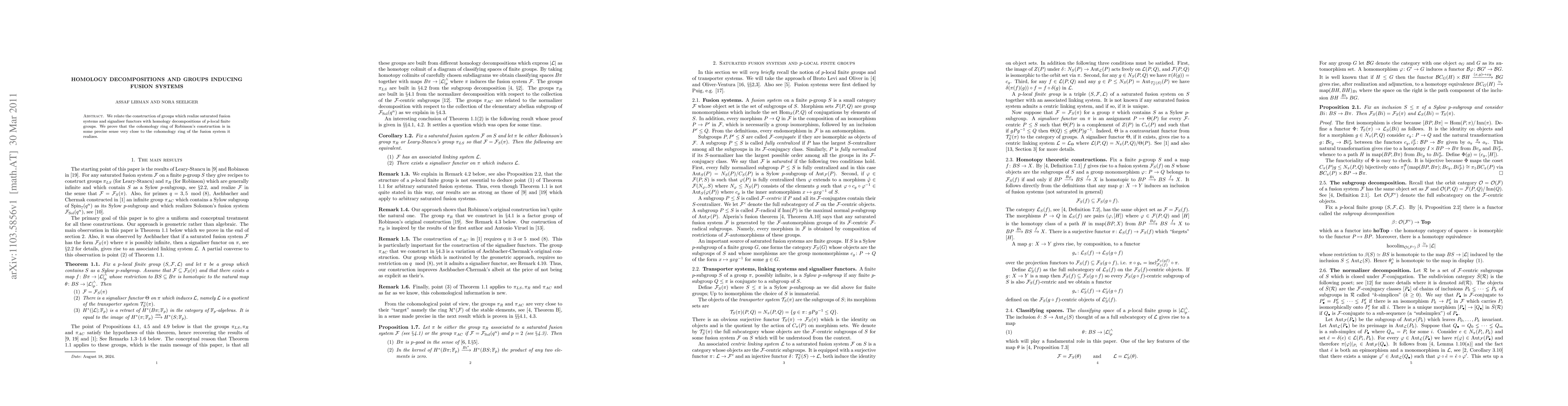 This paper connects the construction of groups realizing saturated fusion systems and signaliser functors with homology decompositions of p-local finite groups, proving that Robinson's construction cohomology ring closely resembles the cohomology ring of the corresponding fusion system.