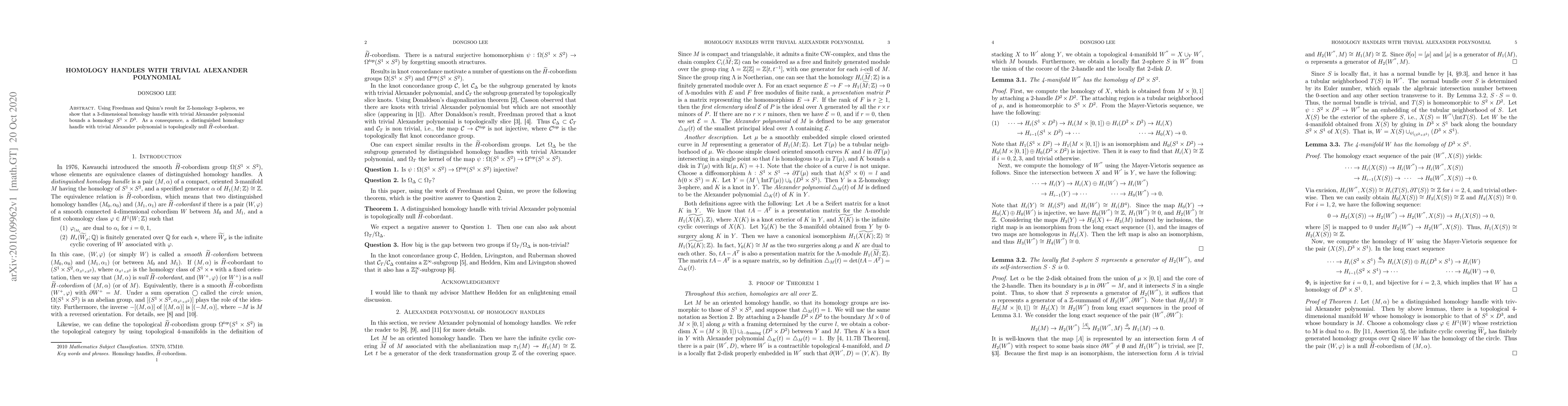 The paper establishes a theorem showing that a distinguished homology handle with a trivial Alexander polynomial is topologically null $\widetilde{H}$-cobordant, building upon Freedman and Quinn's work on $\mathbb{Z}$-homology 3-spheres.