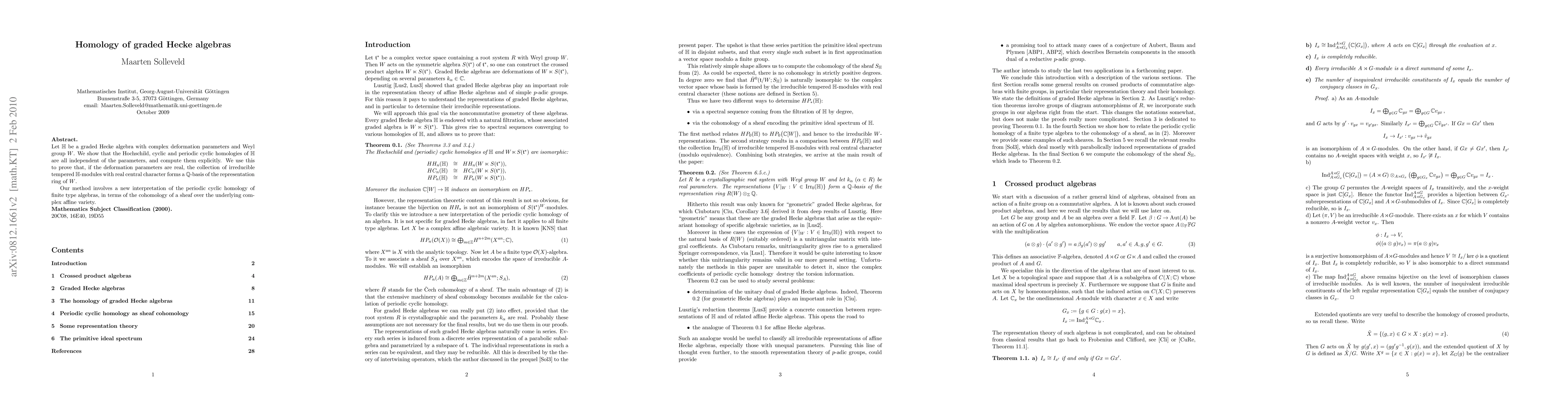 Summary: This paper demonstrates that the homologies of graded Hecke algebras are parameter-independent and computes them explicitly. It uses this result to show that, with real deformation parameters, the irreducible tempered modules form a basis for the representation ring of the Weyl group, employing a novel interpretation of periodic cyclic homology in terms of sheaf cohomology over an affine variety.