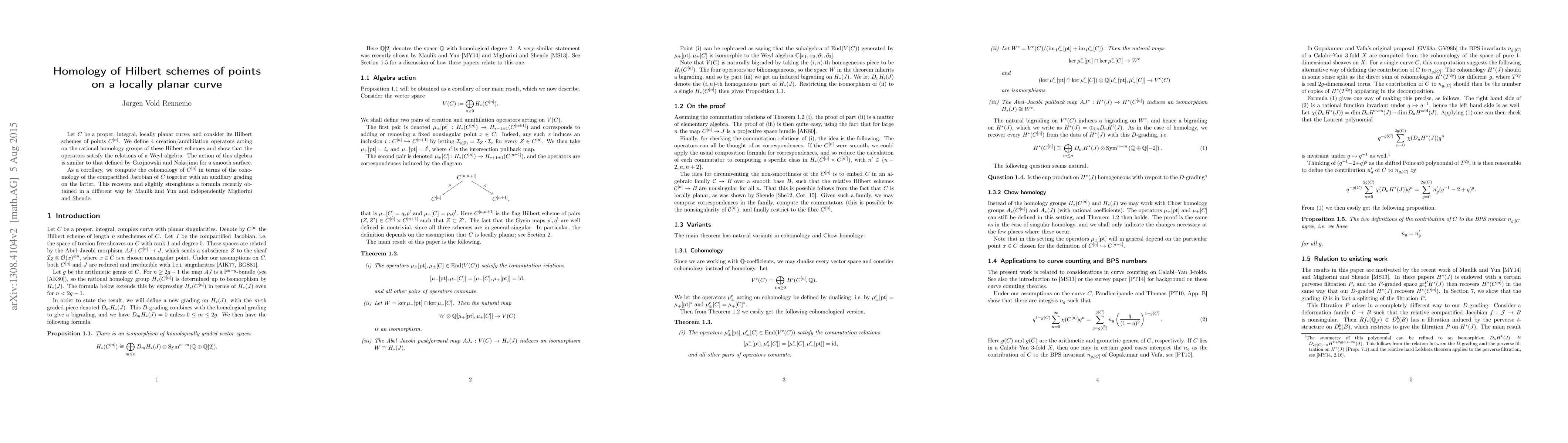 This paper defines creation/annihilation operators on the rational homology of Hilbert schemes of points on a locally planar curve, showing they satisfy Weyl algebra relations. It computes the cohomology of these schemes in terms of the cohomology of the compactified Jacobian of the curve, strengthening a recent formula by Maulik, Yun, Migliorini, and Shende.