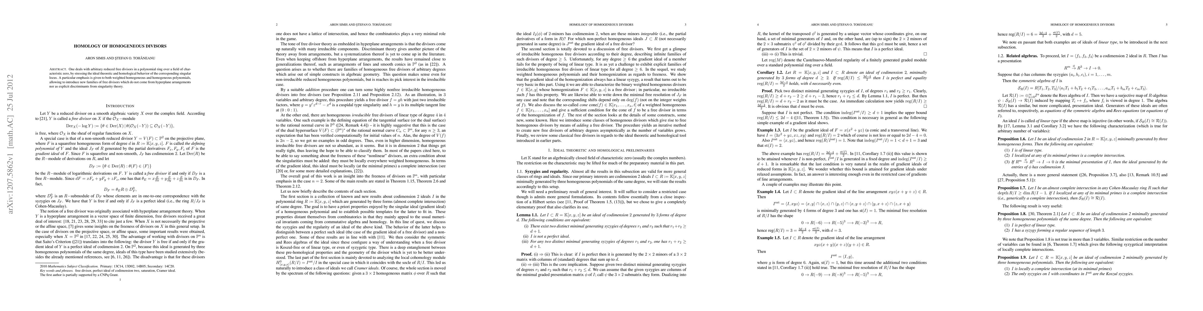 Researchers studied free divisors in polynomial rings over fields of characteristic zero, introducing new families that don't come from hyperplane arrangements or singularity theory. They emphasized ideal theoretic and homological behavior of singular loci for weighted homogeneous and homogeneous polynomials.