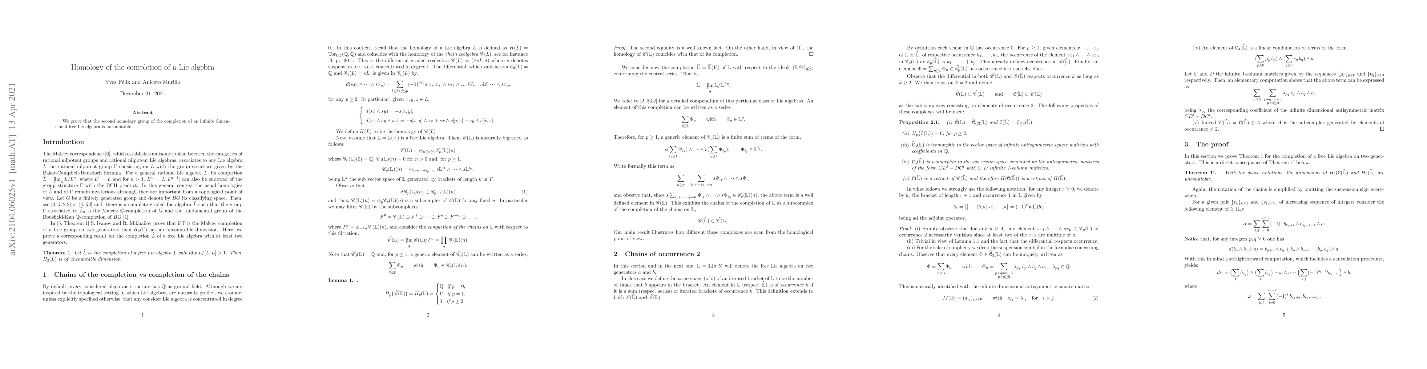 Summary: The paper demonstrates that the second homology group of the completion of an infinite-dimensional free Lie algebra is uncountable, providing significant insight into the structure of such algebraic objects. This result highlights the complex nature of infinite-dimensional Lie algebras.