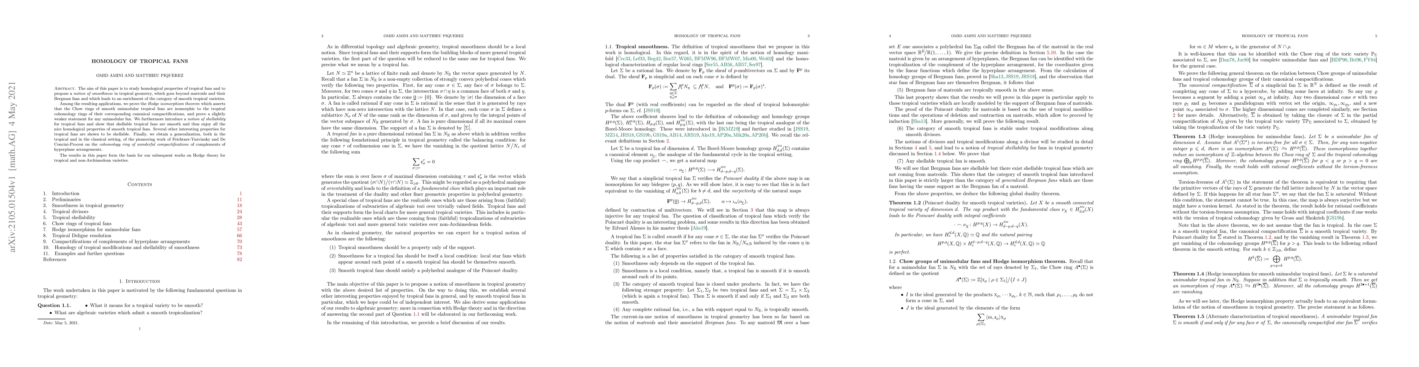 The work extends existing tropical geometry by proposing a novel smoothness criterion and proving significant results on homology and cohomology of tropical fans, going beyond matroidal structures.