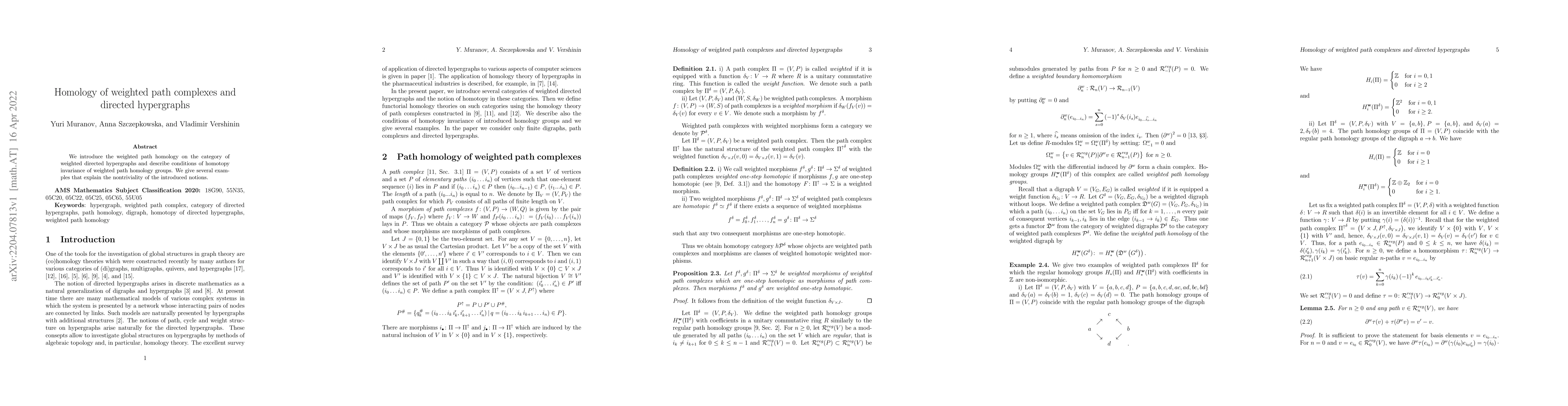 This paper introduces weighted path homology for weighted directed hypergraphs and explores its homotopy invariance conditions. It provides examples illustrating the significance and complexity of the proposed concepts.