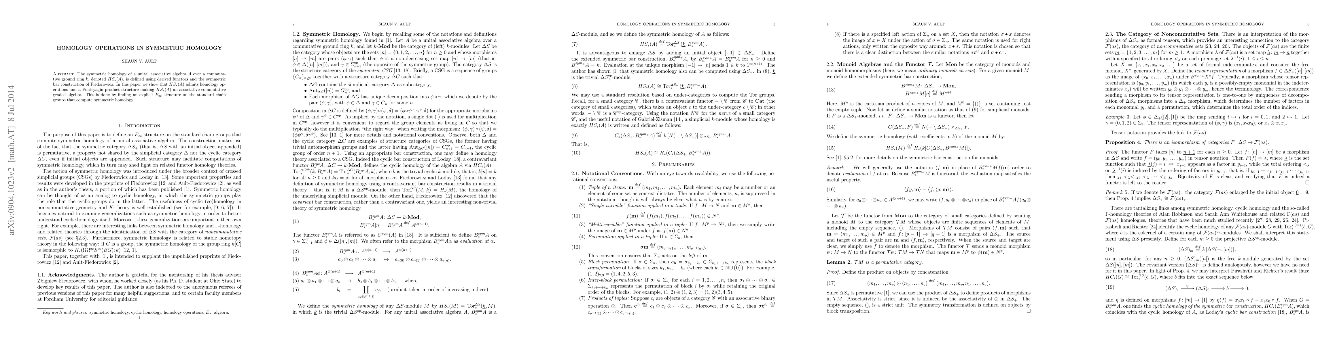 The symmetric homology of a unital associative algebra $A$ over a commutative ground ring $k$, denoted $HS_*(A)$, is defined using derived functors and the symmetric bar construction of Fiedorowicz. In this paper we show that $HS_*(A)$ admits homology operations and a Pontryagin product structure making $HS_*(A)$ an associative commutative graded algebra. This is done by finding an explicit $E_{\infty}$ structure on the standard chain groups that compute symmetric homology.