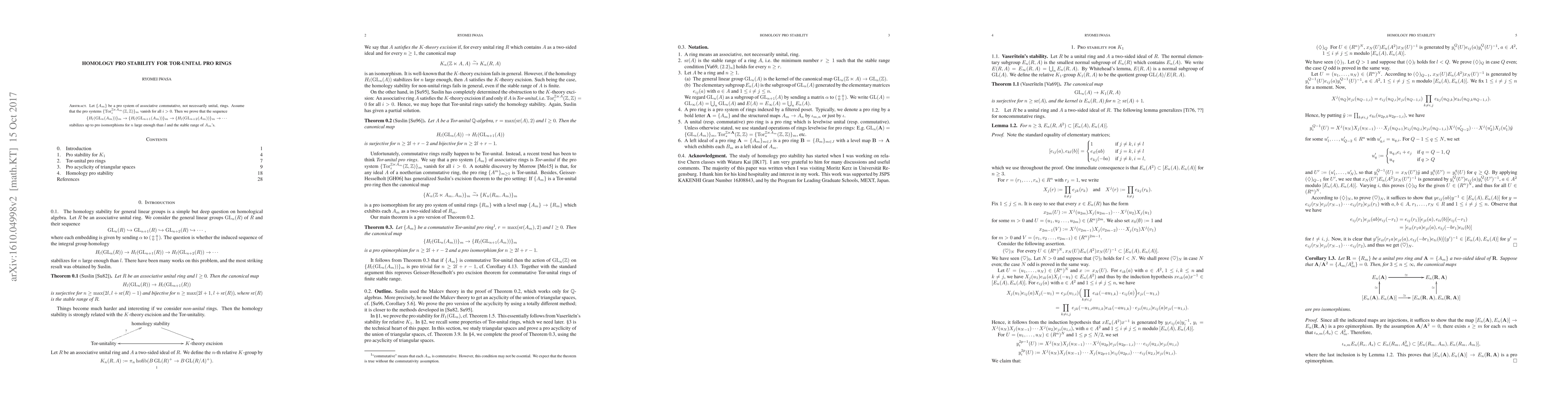 This paper proves that for a pro system of associative commutative rings where certain Tor functors vanish, the sequence of homology groups of their general linear groups stabilizes up to pro isomorphisms for sufficiently large dimensions relative to the stable range of the rings.
