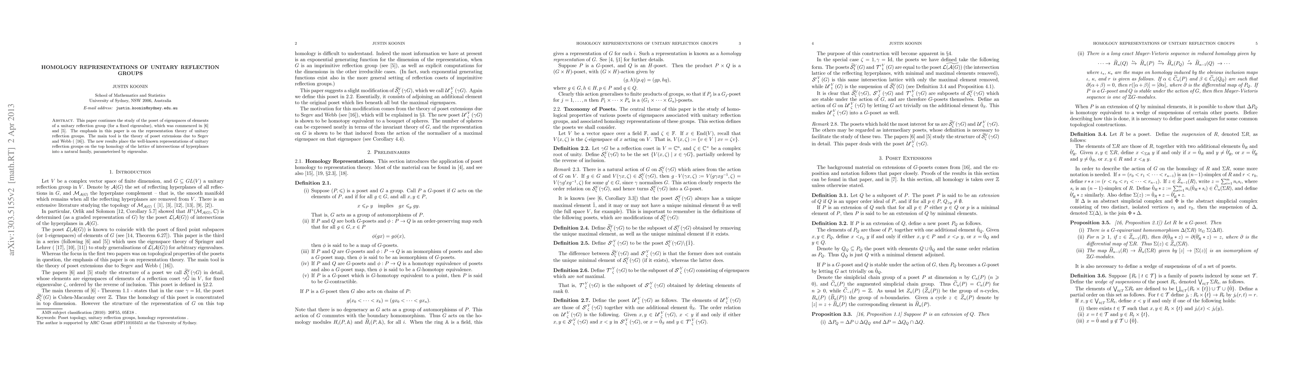 This paper explores the representation theory of unitary reflection groups, utilizing the theory of poset extensions to classify their well-known representations in terms of the top homology of lattices formed by hyperplane intersections, parameterized by eigenvalue.