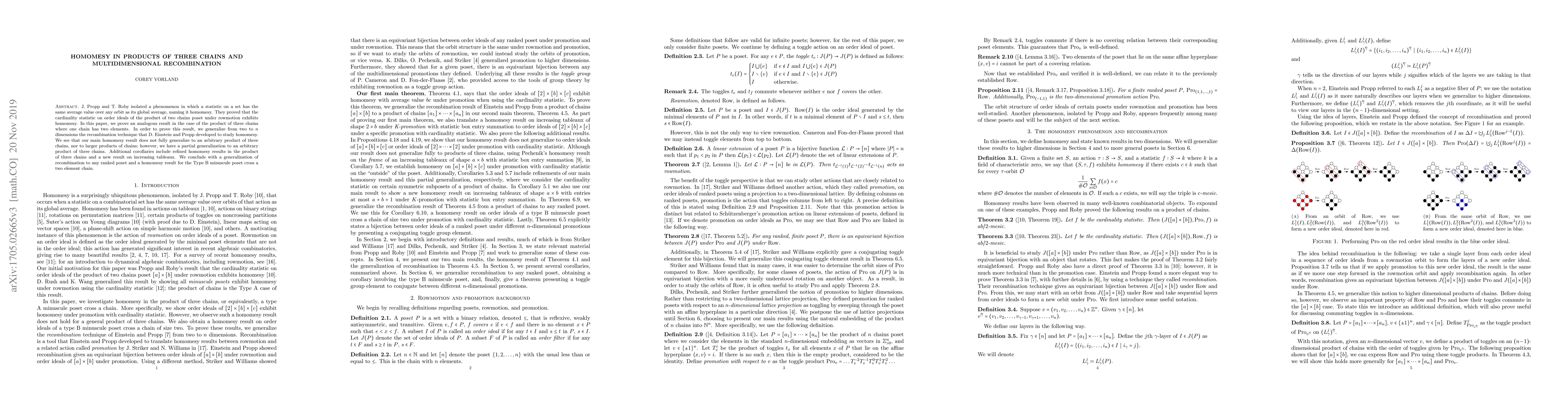This paper proves homomesy for the product of three chains, specifically when one chain has two elements, by generalizing the recombination technique. It also discusses partial generalizations and additional results, including refined homomesy and new findings on increasing tableaux.