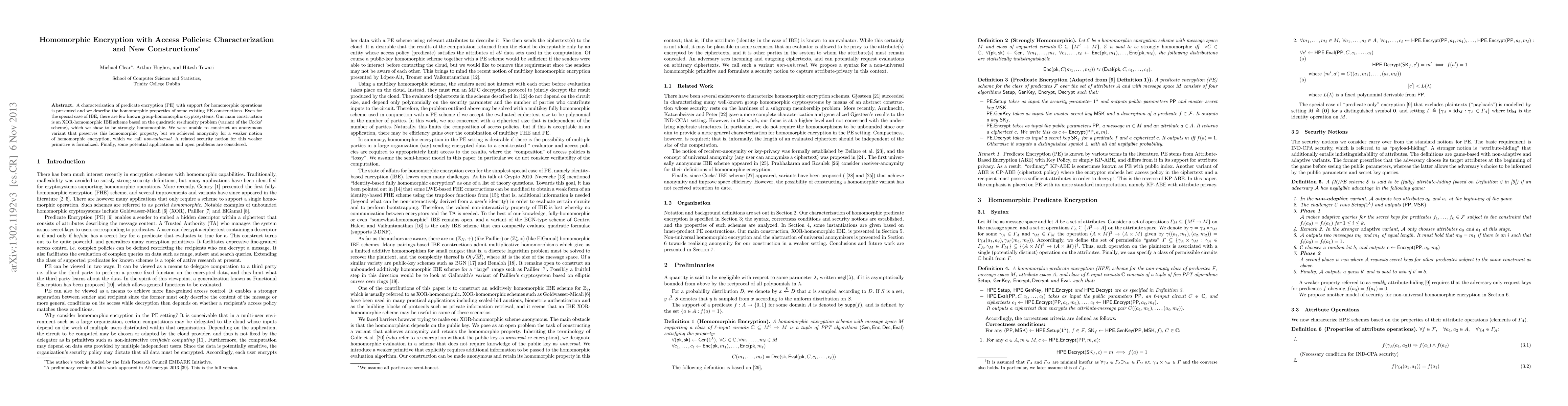 This paper establishes a characterization of predicate encryption with homomorphic properties, introduces an XOR-homomorphic IBE scheme that preserves strong homomorphism, and explores potential applications and open problems in this emerging field.