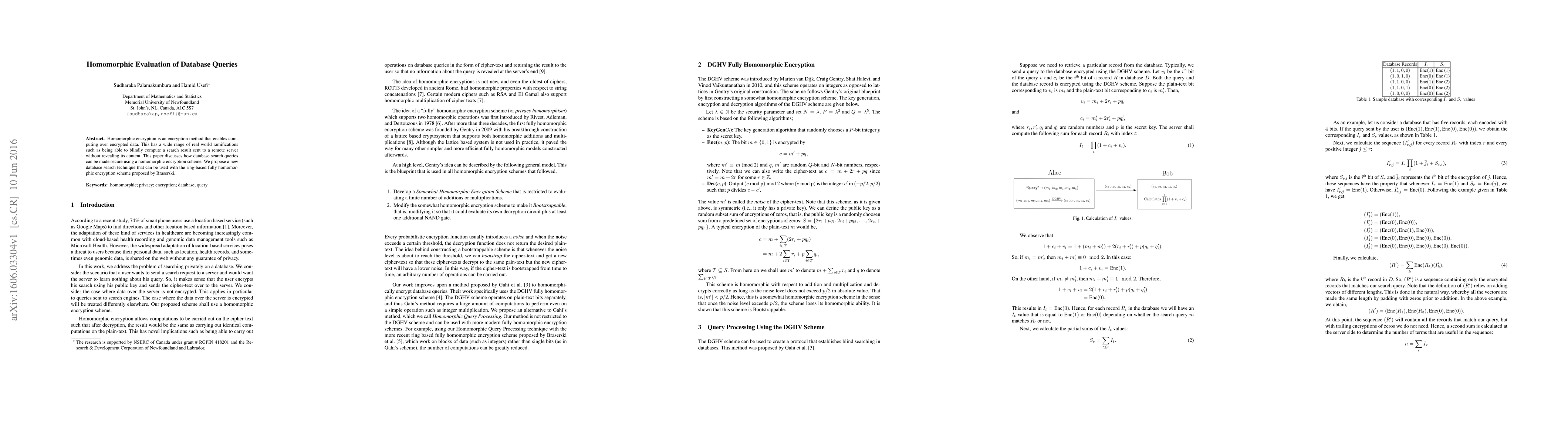 This paper explores the use of homomorphic encryption to securely compute database search queries without revealing their content. It proposes a new technique compatible with Braserski's ring-based fully homomorphic encryption scheme for secure database search.
