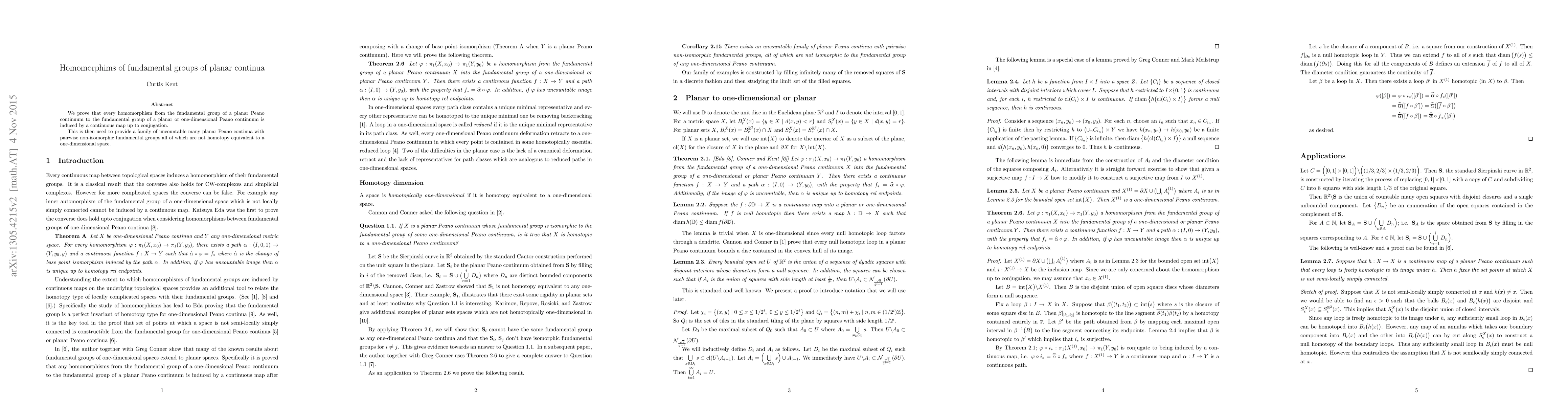 We prove that every homomorphism from the fundamental group of a planar Peano continuum to the fundamental group of a planar or one-dimensional Peano continuum is induced by a continuous map up to conjugation. This is then used to provide a family of uncountable many planar Peano continua with pairwise non-isomorphic fundamental groups all of which are not homotopy equivalent to a one-dimensional space.
