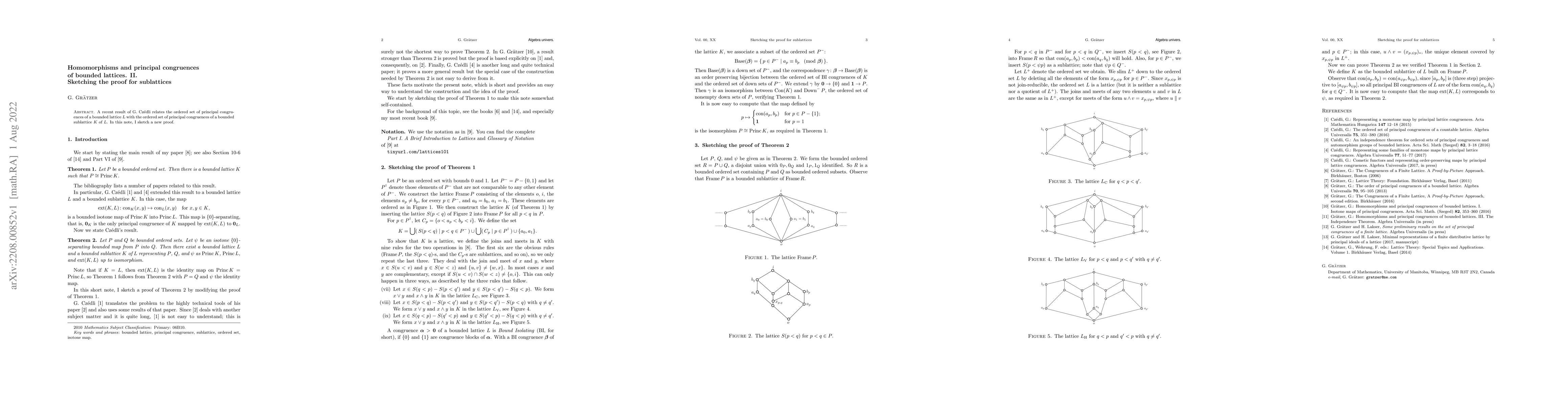 A recent result of G. Cz\'edli relates the ordered set of principal congruences of a bounded lattice $L$ with the ordered set of principal congruences of a~bounded sublattice $K$ of $L$. In this note, I sketch a new proof.