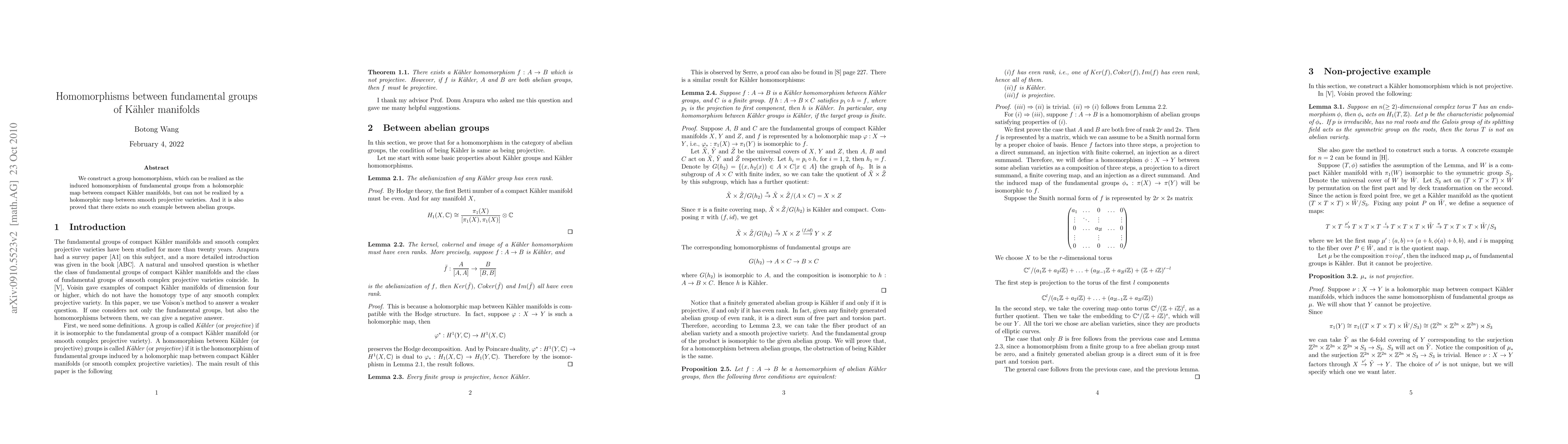 Summary: This paper constructs a group morphism between fundamental groups of compact Kähler manifolds induced by a holomorphic map, which cannot be realized by a holomorphic map between smooth projective varieties, and proves that no such example exists for abelian groups.
