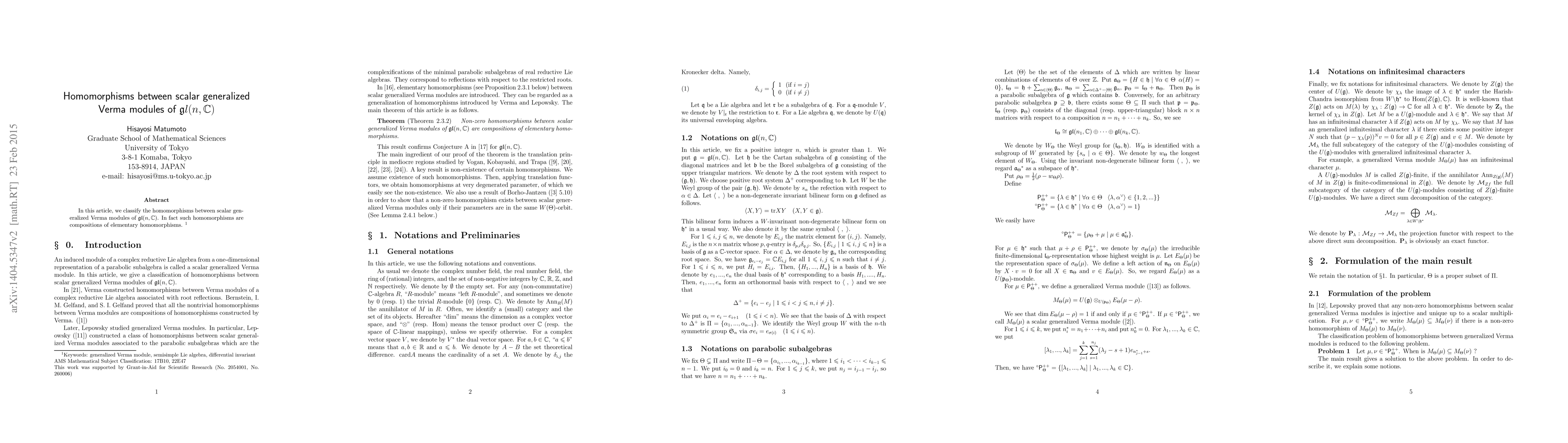 This paper classifies the homomorphisms between generalized Verma modules of ${\mathfrak gl}(n, {\mathbb C})$, demonstrating that they are composed of elementary homomorphisms. The study provides a detailed structural understanding of these module homomorphisms.