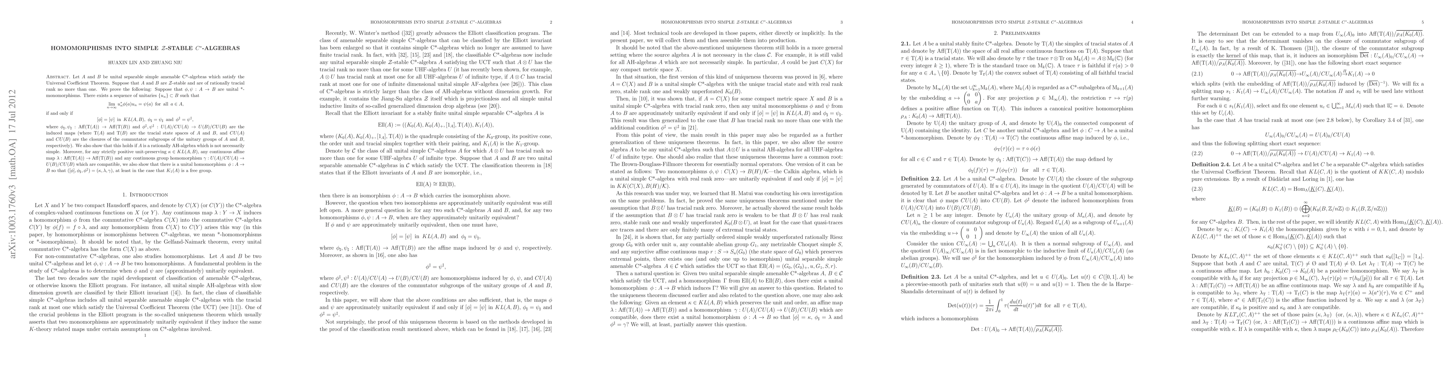 Let $A$ and $B$ be unital separable simple amenable \CA s which satisfy the Universal Coefficient Theorem. Suppose {that} $A$ and $B$ are $\mathcal Z$-stable and are of rationally tracial rank no more than one. We prove the following: Suppose that $\phi, \psi: A\to B$ are unital {monomorphisms}. There exists a sequence of unitaries $\{u_n\}\subset B$ such that $$ \lim_{n\to\infty} u_n^*\phi(a) u_n=\psi(a)\tforal a\in A, $$ if and only if $$ [\phi]=[\psi]\,\,\,\text{in}\,\,\, KL(A,B), \phi_{\sharp}=\psi_{\sharp}\andeqn\phi^{\ddag}=\psi^{\ddag}, $$ where $\phi_{\sharp}, \psi_{\sharp}: \aff(T(A))\to \aff(T(B))$ and $\phi^{\ddag}, \psi^{\ddag}: U(A)/CU(A)\to U(B)/CU(B)$ are {the} induced maps and where $T(A)$ and $T(B)$ are tracial state spaces of $A$ and $B,$ and $CU(A)$ and $CU(B)$ are closure of {commutator} subgroups of unitary groups of $A$ and $B,$ respectively. We also show that this holds for some AH-algebras $A.$ {Moreover, if $\kappa\in KL(A,B)$ preserves the order and the identity, $\lambda: \aff(\tr(A))\to \aff(\tr(B))$ is a continuous affine map and $\gamma: U(A)/CU(A)\to U(B)/CU(B)$ is a \hm\, which are compatible, we also show that there is a unital \hm\, $\phi: A\to B$ so that $([\phi],\phi_{\sharp},\phi^{\ddag})=(\kappa, \lambda, \gamma),$ at least in the case that $K_1(A)$ is a free group,