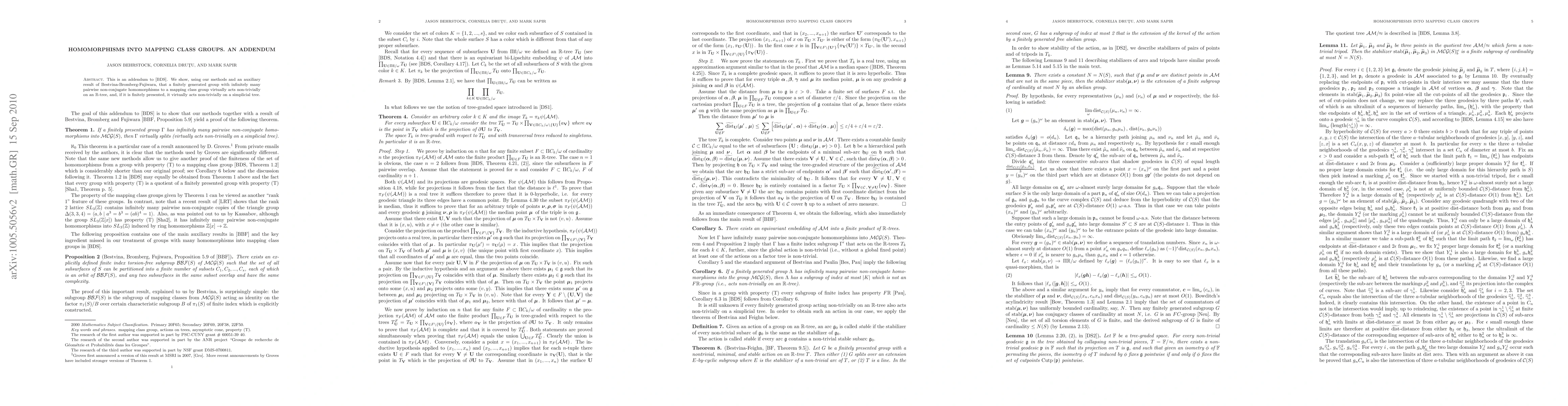 This is an addendum to arXiv: 0810.5376. We show, using our methods and an auxiliary result of Bestvina-Bromberg-Fujiwara, that a finitely generated group with infinitely many pairwise non-conjugate homomorphisms to a mapping class group virtually acts non-trivially on an $\R$-tree, and, if it is finitely presented, it virtually acts non-trivially on a simplicial tree