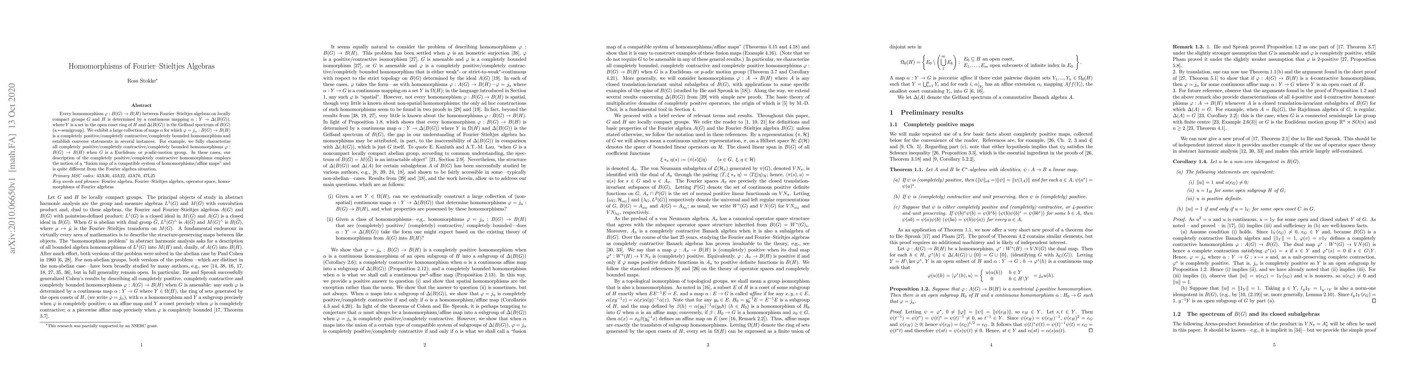This paper investigates the structure of homomorphisms between Fourier-Stieltjes algebras on locally compact groups, showing they are determined by continuous mappings involving the Gelfand spectrum. It characterizes completely positive, contractive, and bounded homomorphisms, particularly for Euclidean- or $p$-adic-motion groups, using the concept of fusion maps.