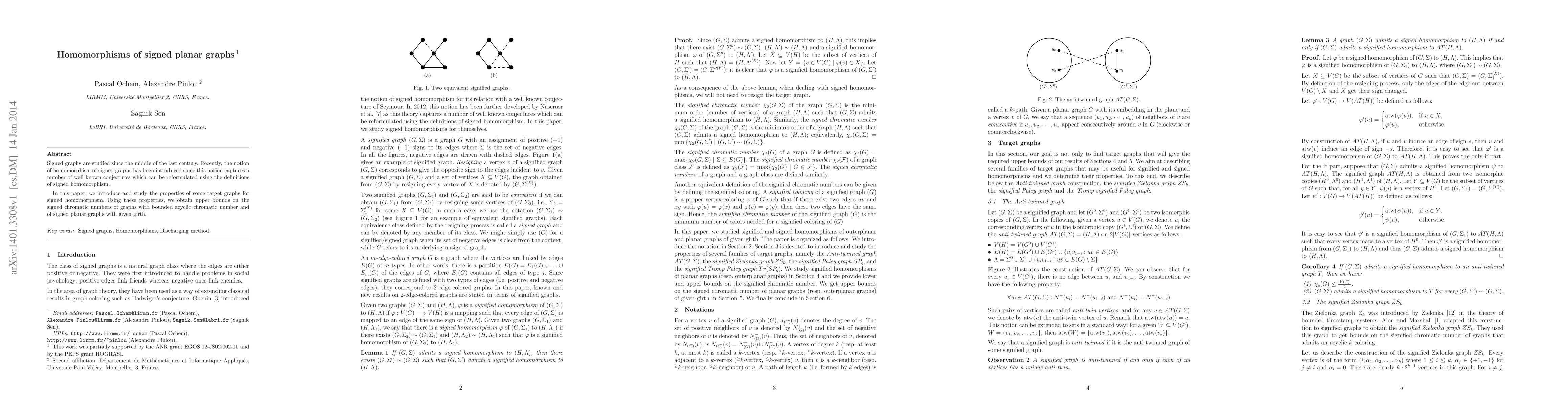 Signed graphs are studied since the middle of the last century. Recently, the notion of homomorphism of signed graphs has been introduced since this notion captures a number of well known conjectures which can be reformulated using the definitions of signed homomorphism. In this paper, we introduce and study the properties of some target graphs for signed homomorphism. Using these properties, we obtain upper bounds on the signed chromatic numbers of graphs with bounded acyclic chromatic number and of signed planar graphs with given girth.