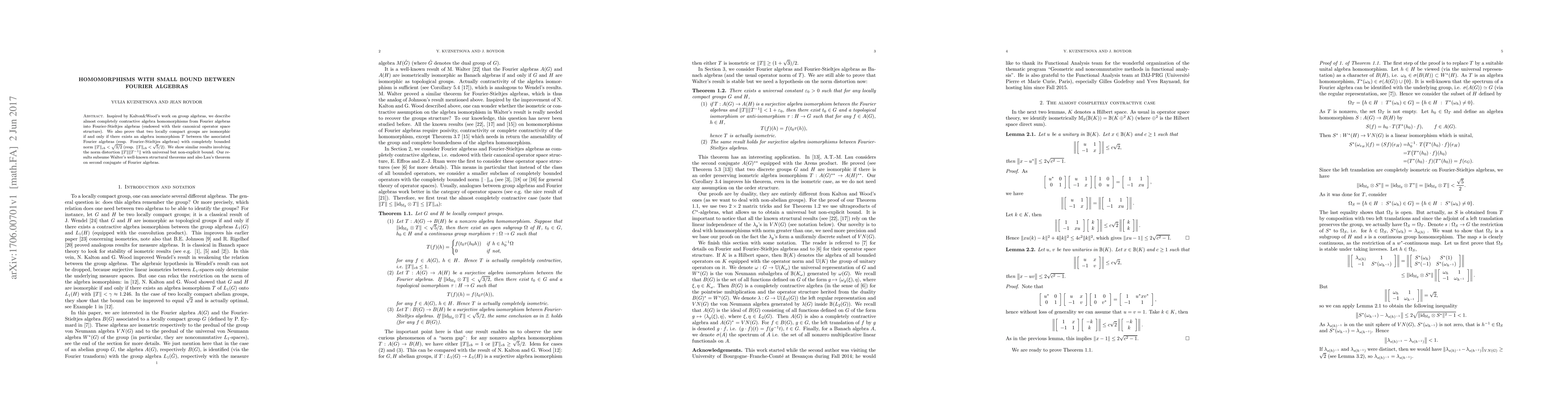 Inspired by Kalton and Wood's work on group algebras, we describe almost completely contractive algebra homomorphisms from Fourier algebras into Fourier-Stieltjes algebras (endowed with their canonical operator space structure). We also prove that two locally compact groups are isomorphic if and only if there exists an algebra isomorphism $T$ between the associated Fourier algebras (resp. Fourier-Stieltjes algebras) with completely bounded norm $\| T \|_{cb} < \sqrt {3/2}$ (resp. $ \| T \|_{cb} < \sqrt {5}/2$). We show similar results involving the norm distortion $\| T \| \| T ^{-1} \|$ with universal but non-explicit bound. Our results subsume Walter's well-known structural theorems and also Lau's theorem on second conjugate of Fourier algebras.