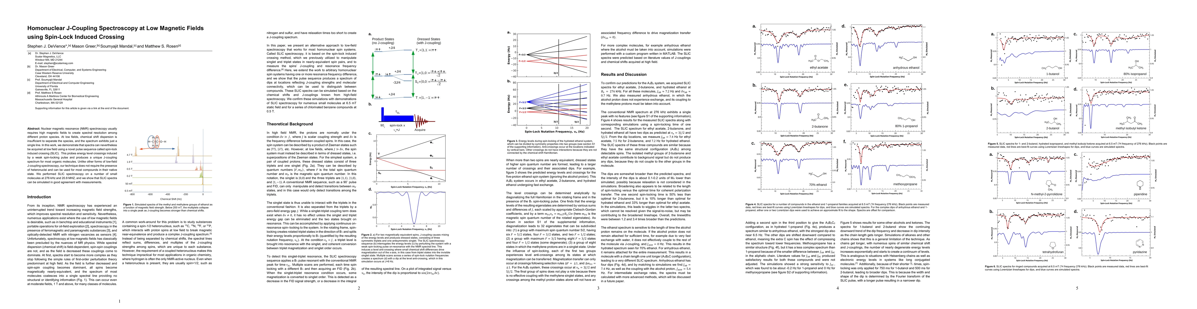 This paper introduces a novel pulse sequence called spin-lock induced crossing (SLIC) for acquiring homonuclear J-coupling NMR spectra at low magnetic fields. Unlike traditional methods, SLIC does not require heteronuclei and can be applied to most organic molecules in their native state.