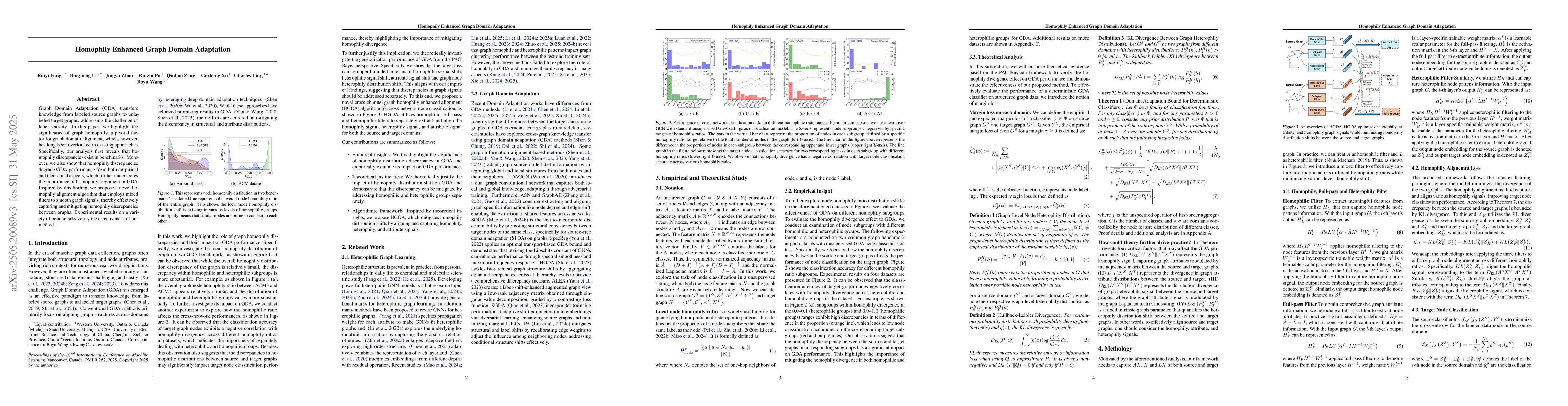 This work distinguishes itself by emphasizing graph homophily in GDA, a factor previously overlooked, and proposing a specific algorithm to enhance domain adaptation through homophily alignment.