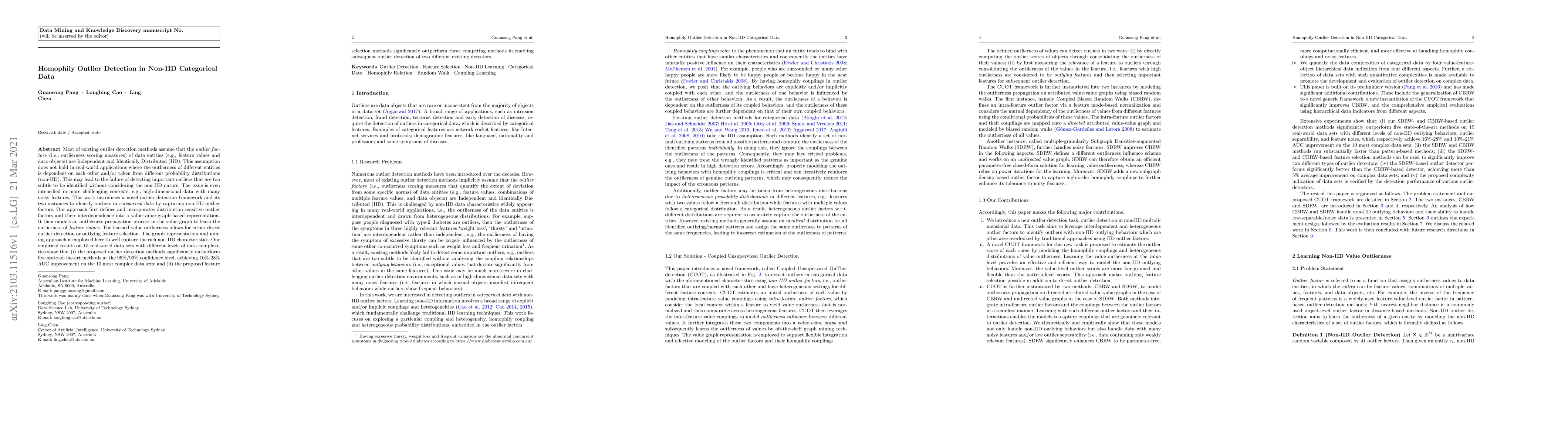 This paper introduces a novel framework for detecting outliers in non-IID categorical data by modeling the interdependencies of outlier factors through a value-value graph. The proposed methods outperform existing state-of-the-art techniques, achieving significant improvements in both outlier detection and feature selection.