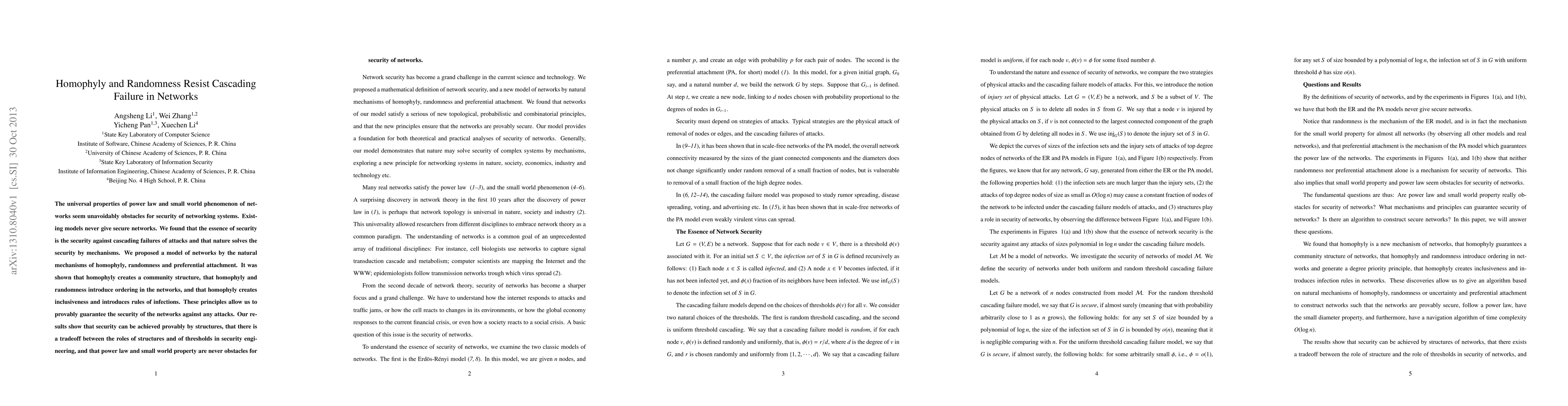 The universal properties of power law and small world phenomenon of networks seem unavoidably obstacles for security of networking systems. Existing models never give secure networks. We found that the essence of security is the security against cascading failures of attacks and that nature solves the security by mechanisms. We proposed a model of networks by the natural mechanisms of homophyly, randomness and preferential attachment. It was shown that homophyly creates a community structure, that homophyly and randomness introduce ordering in the networks, and that homophyly creates inclusiveness and introduces rules of infections. These principles allow us to provably guarantee the security of the networks against any attacks. Our results show that security can be achieved provably by structures, that there is a tradeoff between the roles of structures and of thresholds in security engineering, and that power law and small world property are never obstacles for security of networks.