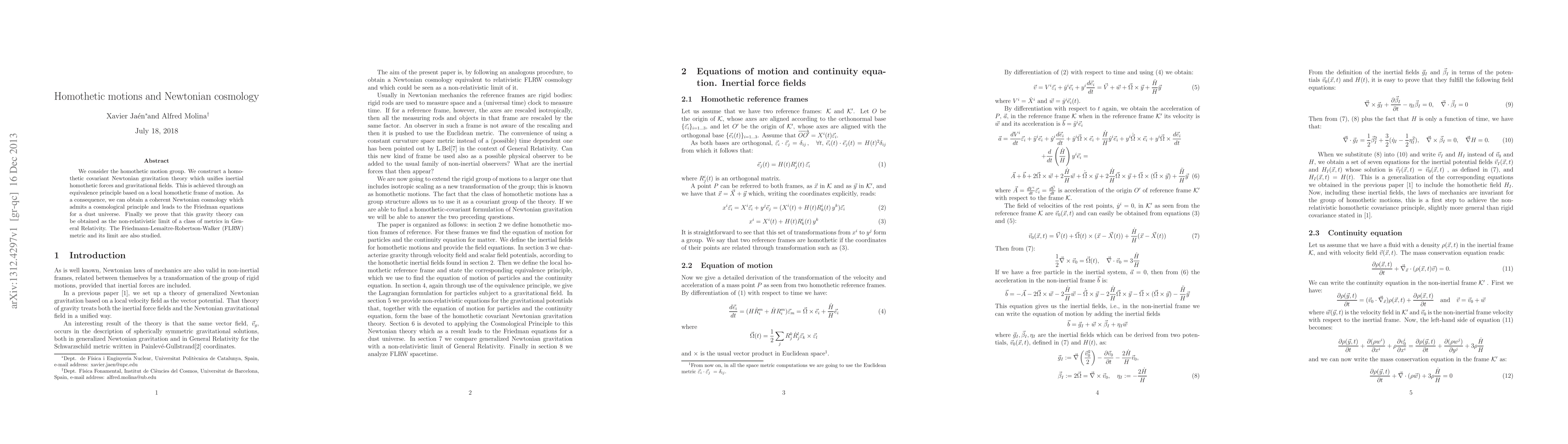 We consider the homothetic motion group. We construct a homothetic covariant Newtonian gravitation theory which unifies inertial homothetic forces and gravitational fields. This is achieved through an equivalence principle based on a local homothetic frame of motion. As a consequence, we can obtain a coherent Newtonian cosmology which admits a cosmological principle and leads to the Friedman equations for a dust universe. Finally we prove that this gravity theory can be obtained as the non-relativistic limit of a class of metrics in General Relativity. The Friedmann-Lema\^\i tre-Robertson-Walker (FLRW) metric and its limit are also studied.