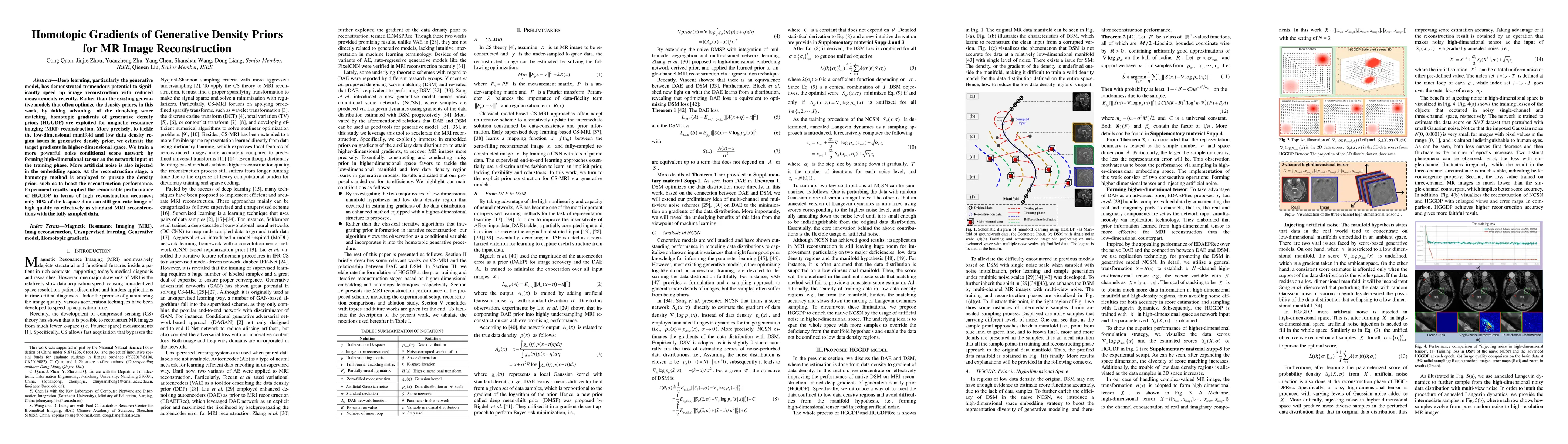 This paper proposes homotopic gradients of generative density priors (HGGDP) for MRI reconstruction, leveraging denoising score matching and high-dimensional tensor inputs to enhance generative models. The method achieves high reconstruction accuracy using only 10% of the k-space data, comparable to standard MRI reconstruction with full data.