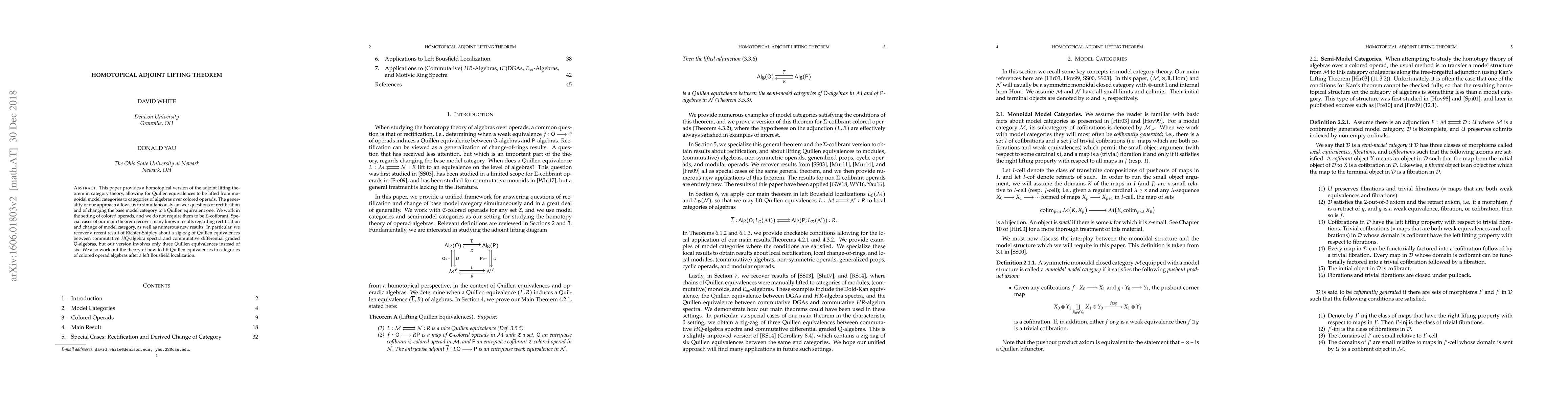This paper introduces a homotopical adjoint lifting theorem in category theory, allowing Quillen equivalences to be lifted between monoidal model categories and categories of algebras over colored operads, with implications for rectification and model category change.