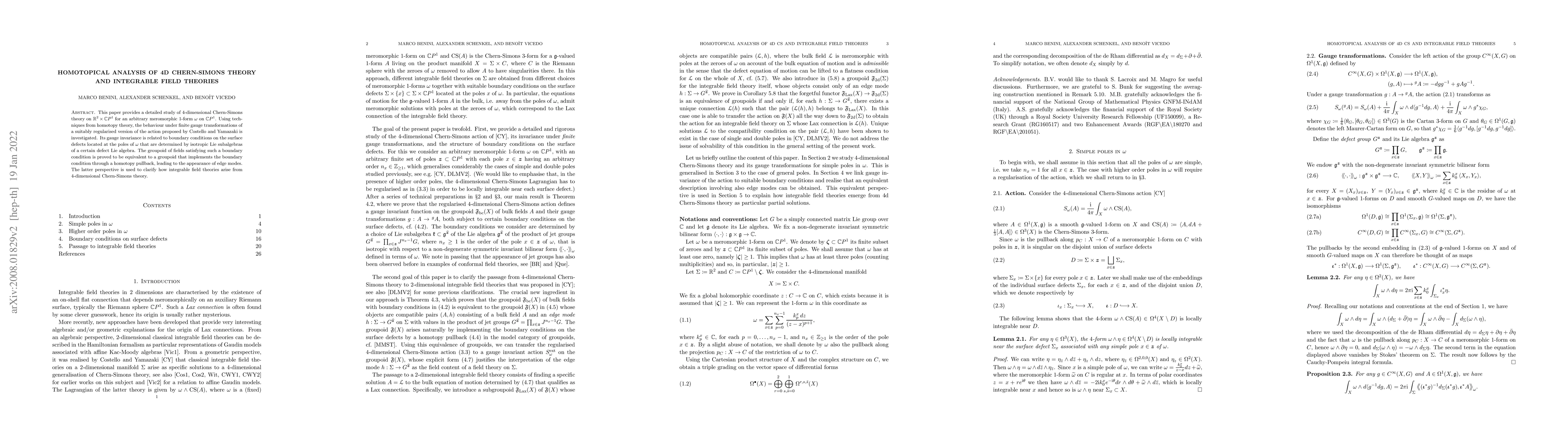 This paper explores $4$-dimensional Chern-Simons theory on $\mathbb{R}^2 \times \mathbb{C}P^1$, demonstrating its gauge invariance through homotopy theory and relating it to integrable field theories via boundary conditions and edge modes.
