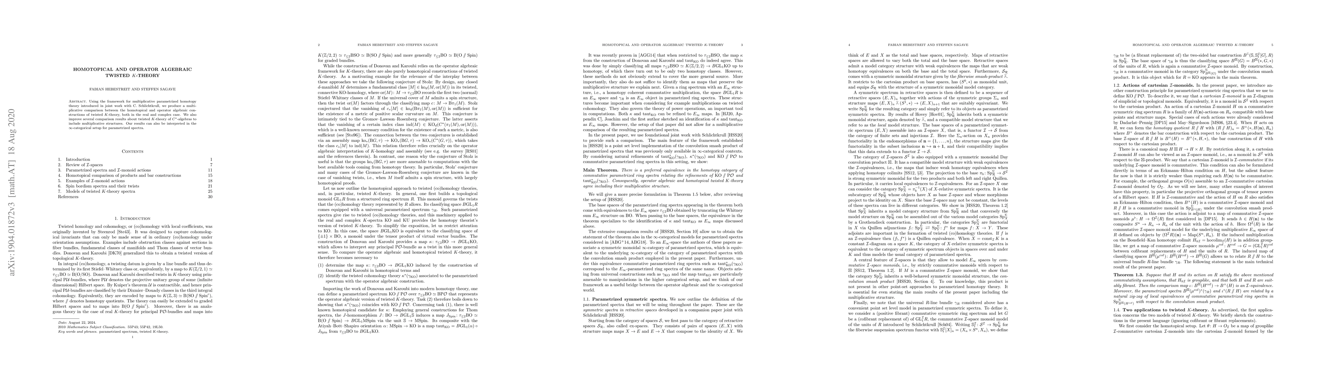 Using the framework for multiplicative parametrized homotopy theory introduced in joint work with C. Schlichtkrull, we produce a multiplicative comparison between the homotopical and operator algebraic constructions of twisted K-theory, both in the real and complex case. We also improve several comparison results about twisted K-theory of C*-algebras to include multiplicative structures. Our results can also be interpreted in the infinity-categorical setup for parametrized spectra.