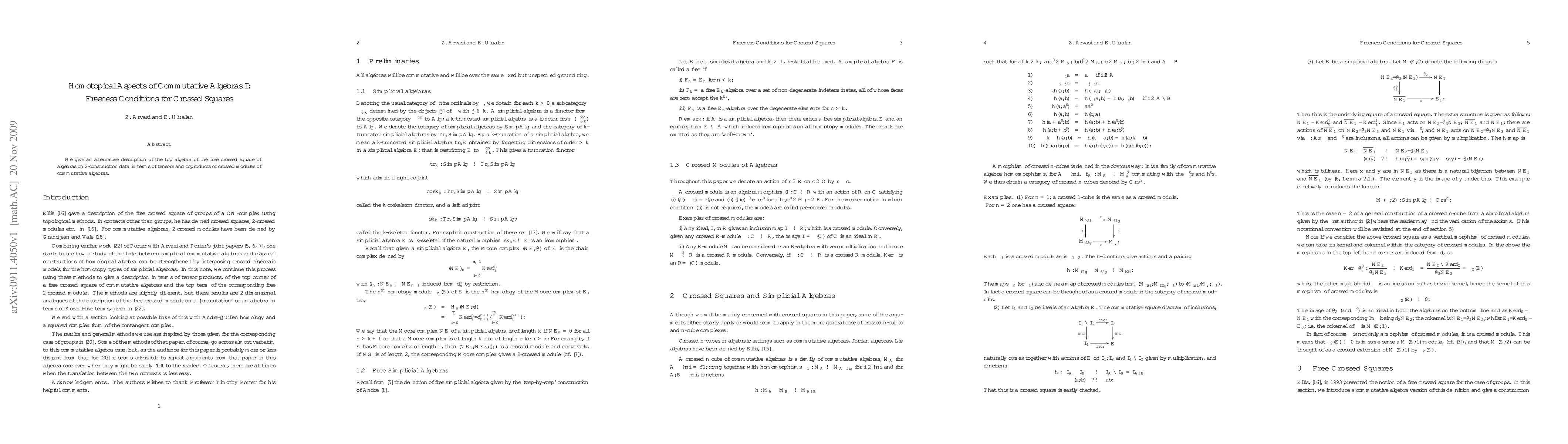 We give an alternative description of the top algebra of the free crossed square of algebras on 2-construction data in terms of tensors and coproducts of crossed modules of commutative algebras.