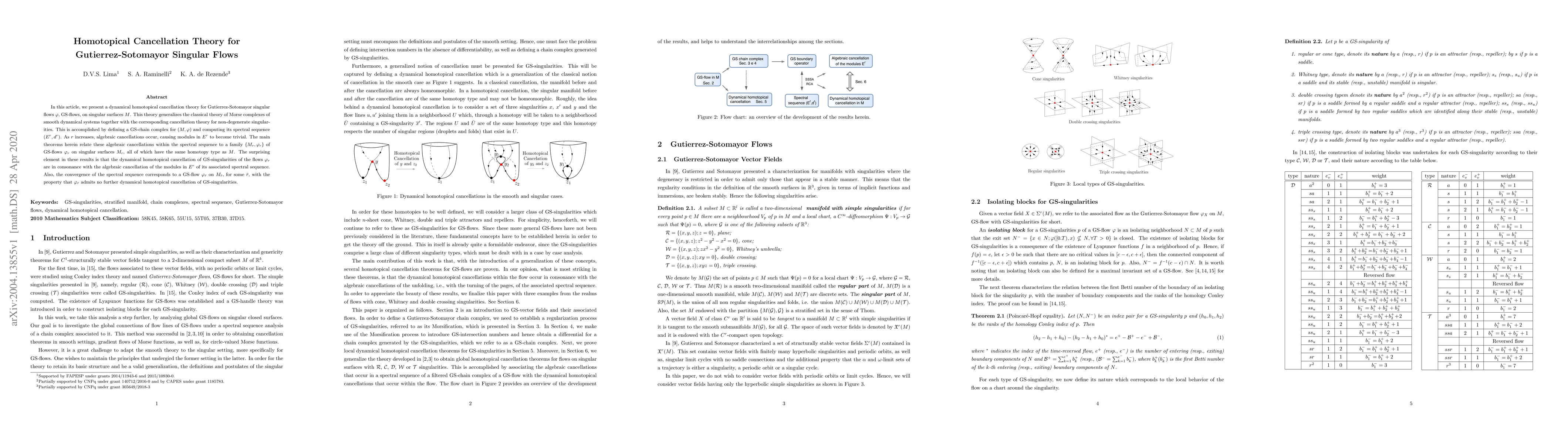 This paper develops a homotopical cancellation theory for Gutierrez-Sotomayor singular flows on singular surfaces, generalizing classical Morse theory. It establishes a GS-chain complex and a spectral sequence that reflects algebraic cancellations correlating with dynamical cancellations of singularities.