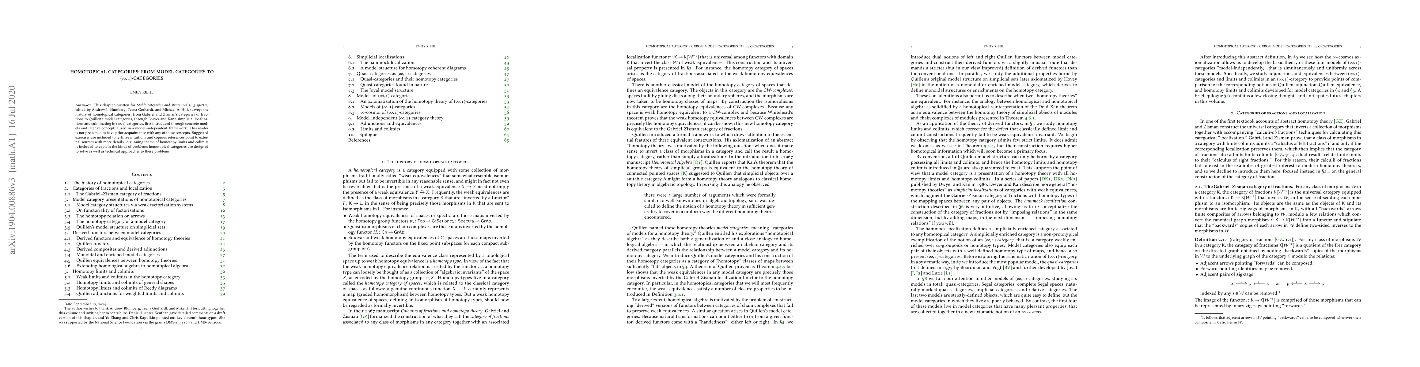 This chapter provides an accessible survey of the evolution of homotopical categories, tracing the path from Gabriel and Zisman's foundational work to the current understanding of $(\infty,1)$-categories, with exercises and references for deeper exploration. It emphasizes homotopy limits and colimits to illustrate the problems homotopical categories address.