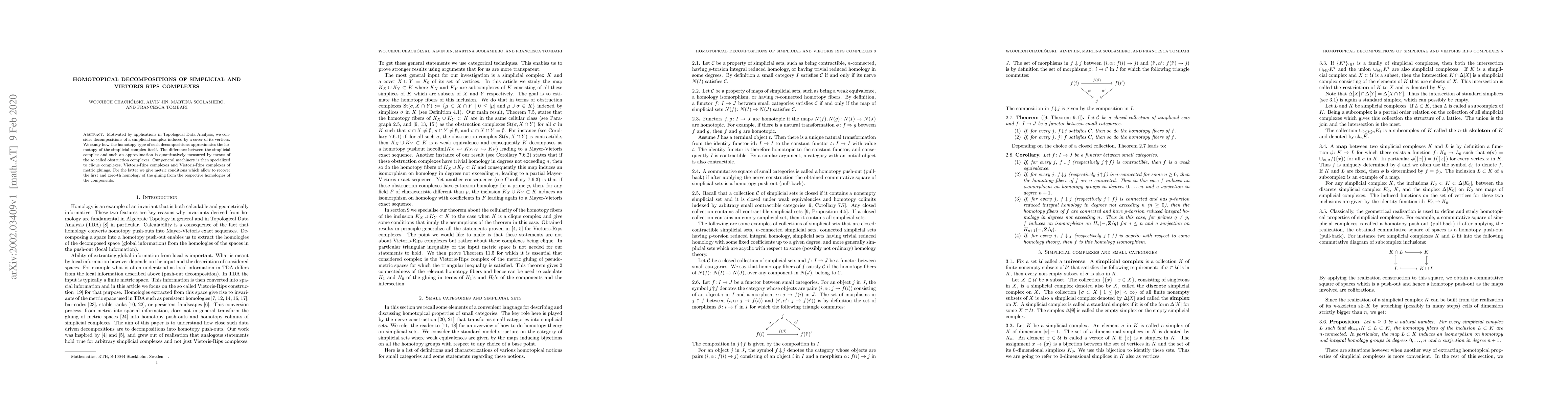 Motivated by applications in Topological Data Analysis, we consider decompositions of a simplicial complex induced by a cover of its vertices. We study how the homotopy type of such decompositions approximates the homotopy of the simplicial complex itself. The difference between the simplicial complex and such an approximation is quantitatively measured by means of the so called obstruction complexes. Our general machinery is then specialized to clique complexes, Vietoris-Rips complexes and Vietoris-Rips complexes of metric gluings. For the latter we give metric conditions which allow to recover the first and zero-th homology of the gluing from the respective homologies of the components.