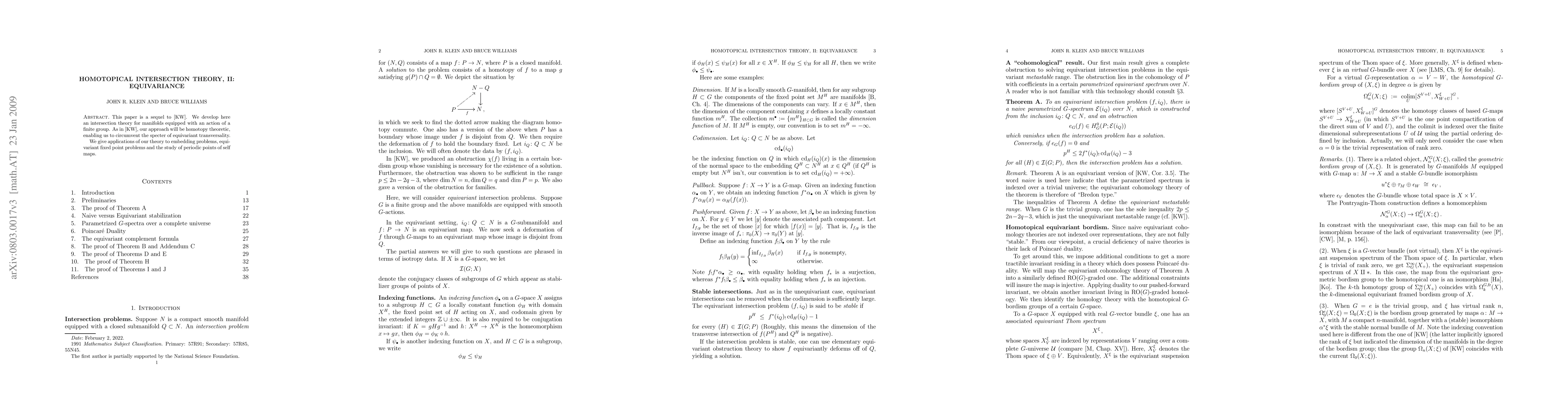 This paper develops a homotopy-theoretic intersection theory for manifolds with finite group actions, avoiding the complexities of equivariant transversality. It has applications to embedding problems, equivariant fixed point theory, and the enumeration of periodic points of self-maps on compact smooth manifolds.