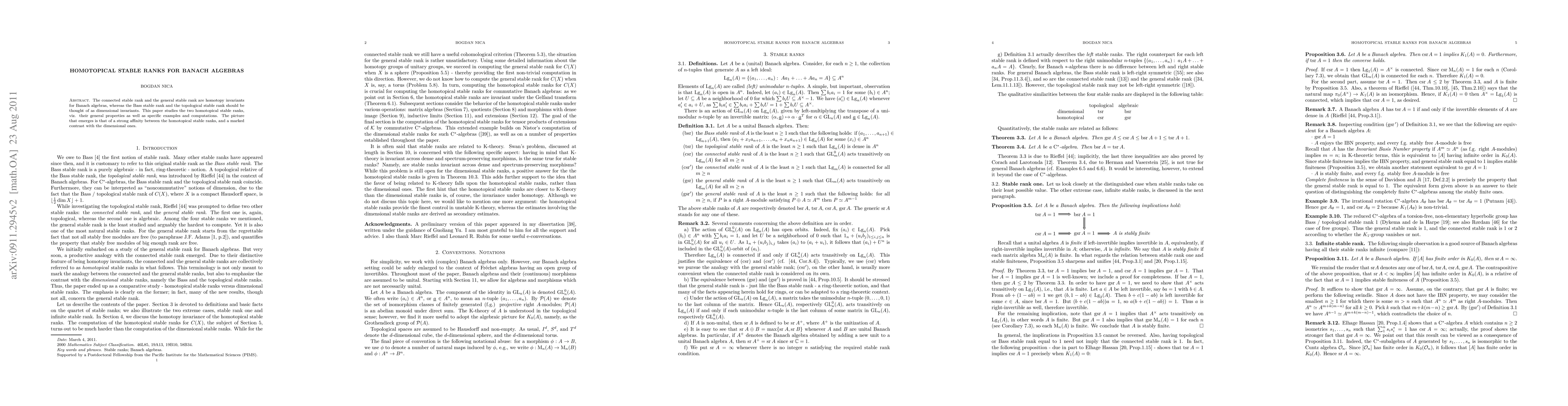 This paper investigates the connected stable rank and general stable rank for Banach algebras, demonstrating their role as homotopy invariants. It highlights their strong affinity compared to dimensional invariants like the Bass and topological stable ranks, offering insights through examples and computations.