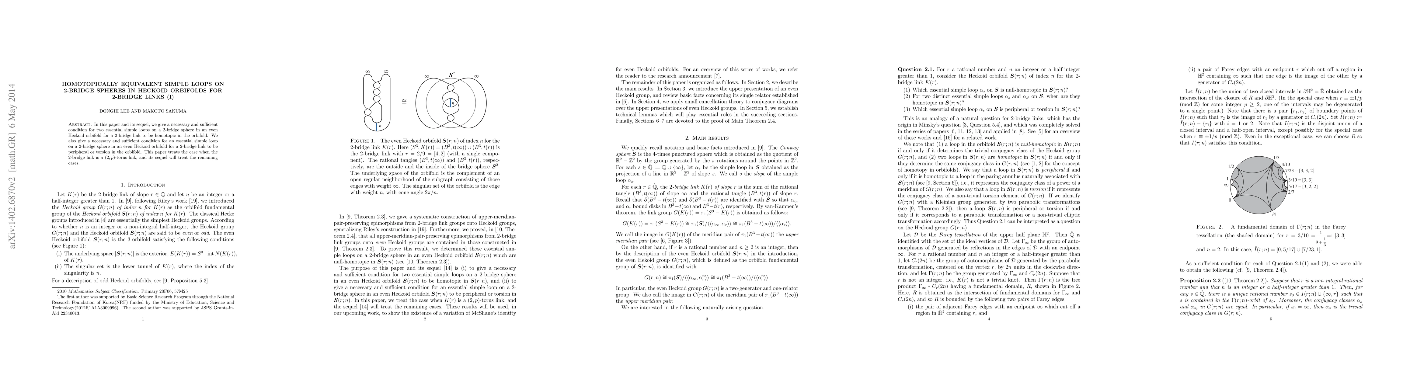 This paper establishes a necessary and sufficient condition for homotopic equivalence of essential simple loops on a 2-bridge sphere in an even Heckoid orbifold for a $(2,p)$-torus link, and also determines when such loops are peripheral or torsion in the orbifold. The sequel will address other cases of 2-bridge links.