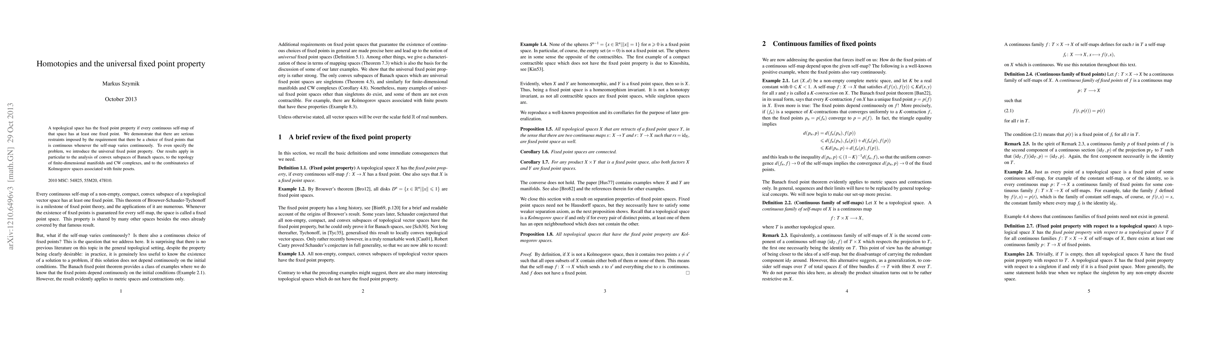 This paper explores the universal fixed point property in topological spaces, demonstrating that continuous choice of fixed points under continuous self-maps imposes significant constraints. The findings have implications for the analysis of convex subspaces in Banach spaces, the topology of finite-dimensional manifolds and CW complexes, and the combinatorics of Kolmogorov spaces.