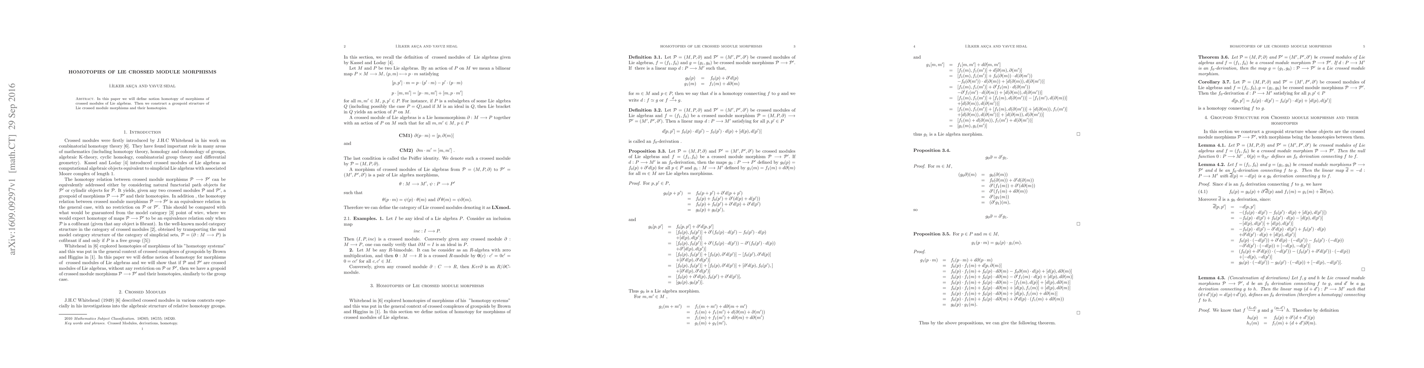 This paper introduces the concept of homotopies for morphisms between crossed modules of Lie algebras and establishes a groupoid structure encompassing both the morphisms and their homotopies.