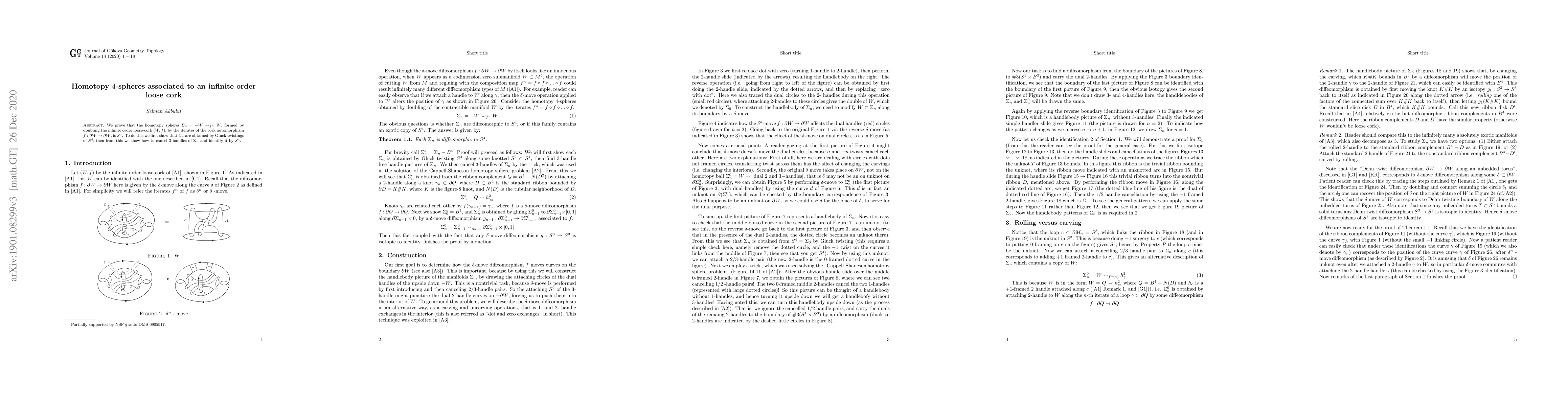 This paper demonstrates that homotopy $4$-spheres $\Sigma_{n}$ formed by iterating the cork diffeomorphism $f$ on an infinite order loose cork $(W,f)$ are homeomorphic to $S^4$. It achieves this by showing that $\Sigma_{n}$ are obtained via Gluck twists of $S^4$ and then canceling $3$-handles to identify them as $S^4$.