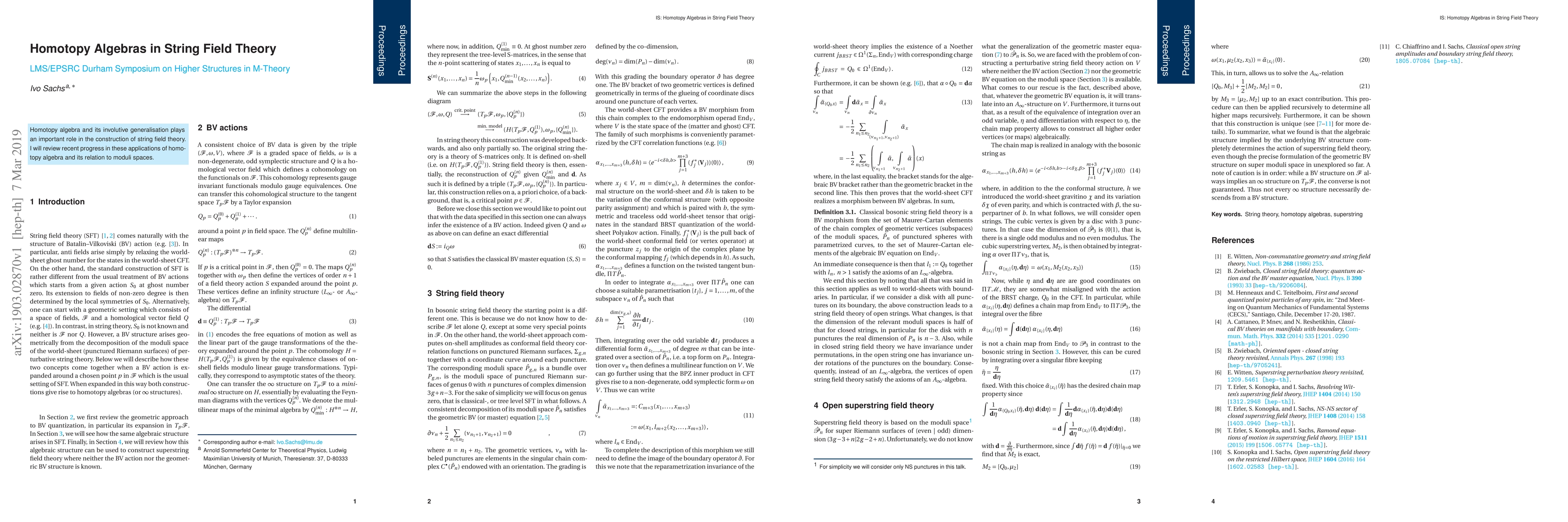 Homotopy algebra and its involutive generalisation plays an important role in the construction of string field theory. I will review recent progress in these applications of homotopy algebra and its relation to moduli spaces.